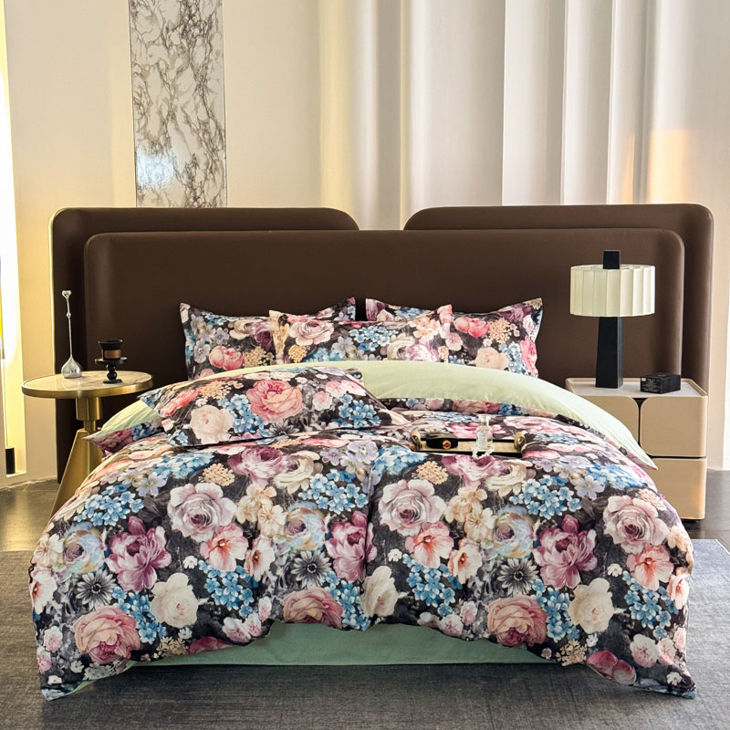 商品名称:(总)桔禾家纺 2025新款田园花卉小清新直播加厚植物羊绒四件套高克重磨毛跨境四件套 大量现货