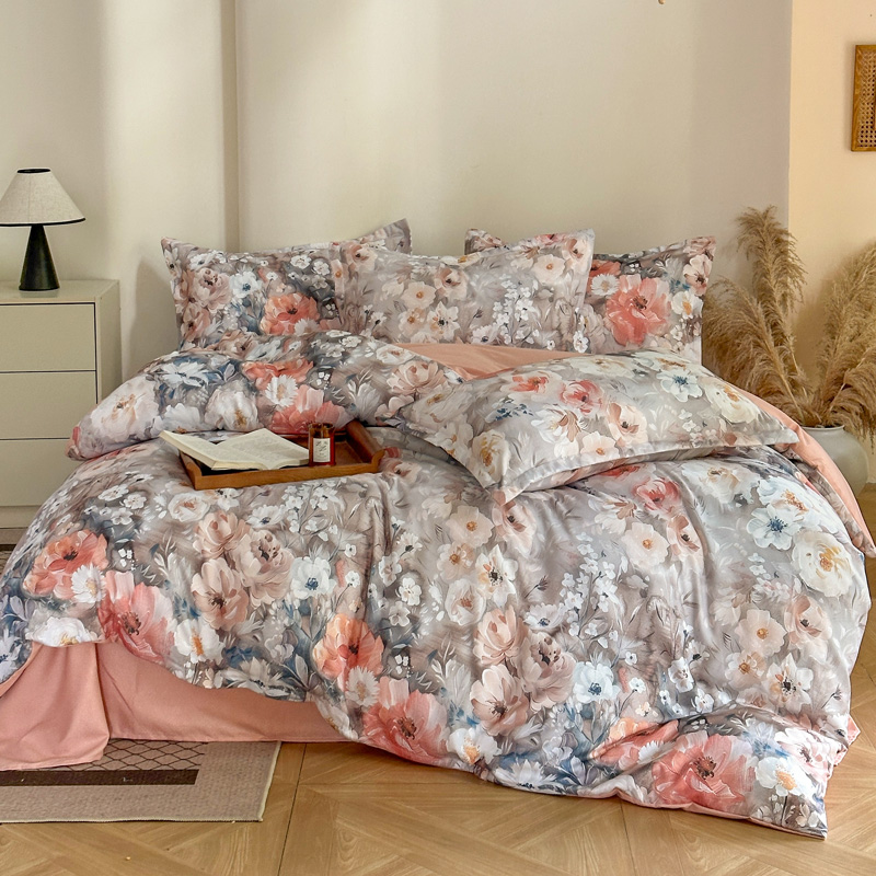 (总)桔禾家纺 2025新款田园花卉小清新直播加厚植物羊绒四件套高克重磨毛跨境四件套 大量现货