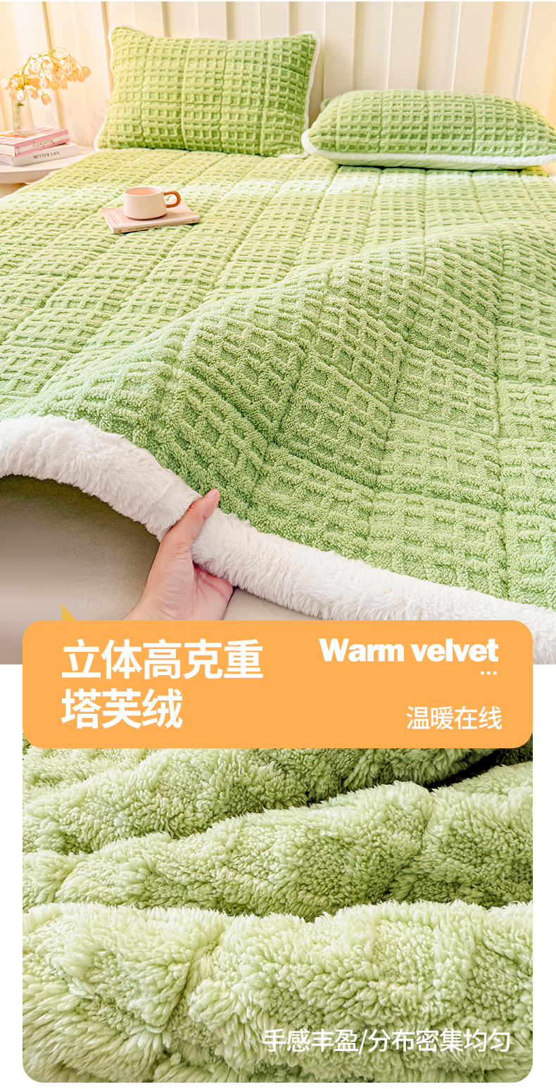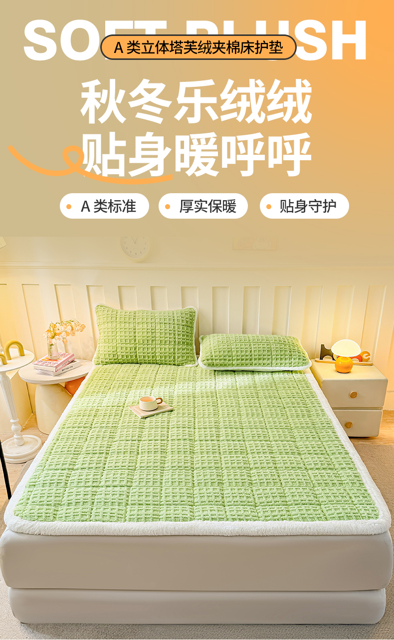 予梦家纺 2025新款塔芙绒床护垫床垫保护套 星梦格 果绿