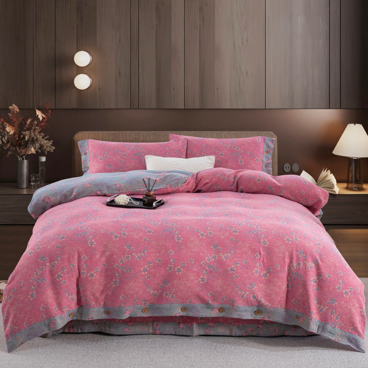 (总)双层纱家居 2025新款纯棉双层纱纽扣款四件套,春雨墨绿,凤尾花,黑茶,红石榴,蝴蝶粉,蝴蝶紫,花絮黄,花絮蓝,流金岁月粉灰,流金岁月紫,陌上花开深蓝,牡丹深紫,牡丹夕颜紫红,秋雨墨绿,亭亭玉立,雾里看花墨蓝,新款薰衣草,新龙凤呈祥,一帆风顺灰,羽毛桔,织梦粉,织梦水墨,织梦紫罗兰
