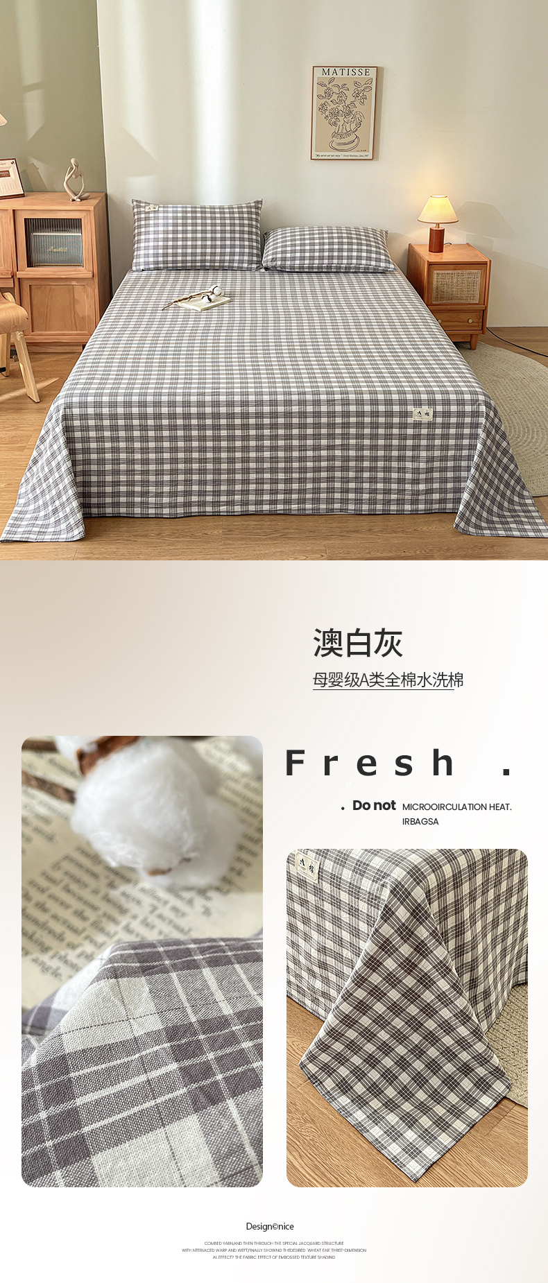 21度C 2026新款A类全棉水洗棉母婴级床单 墨织格