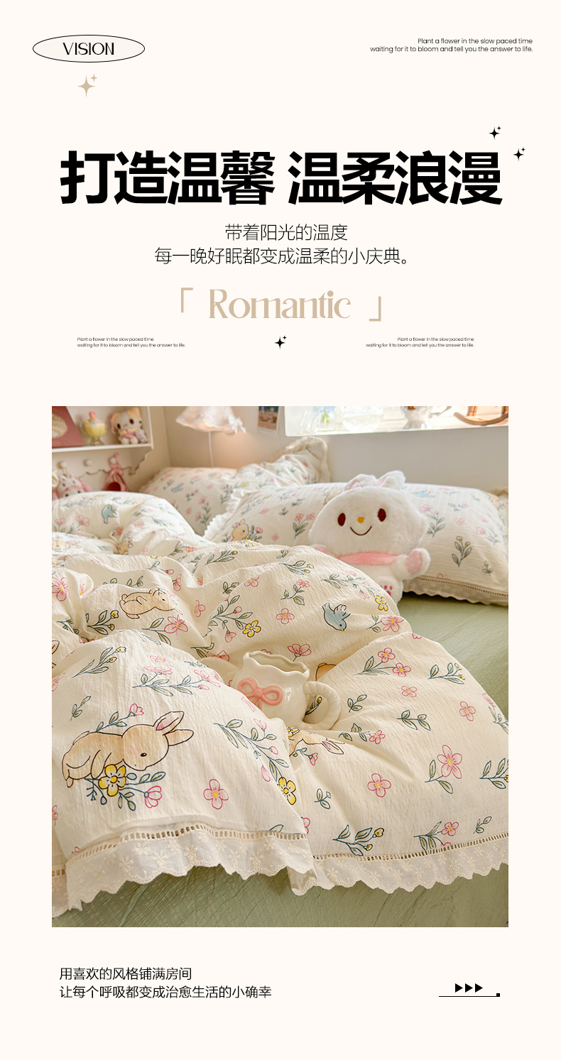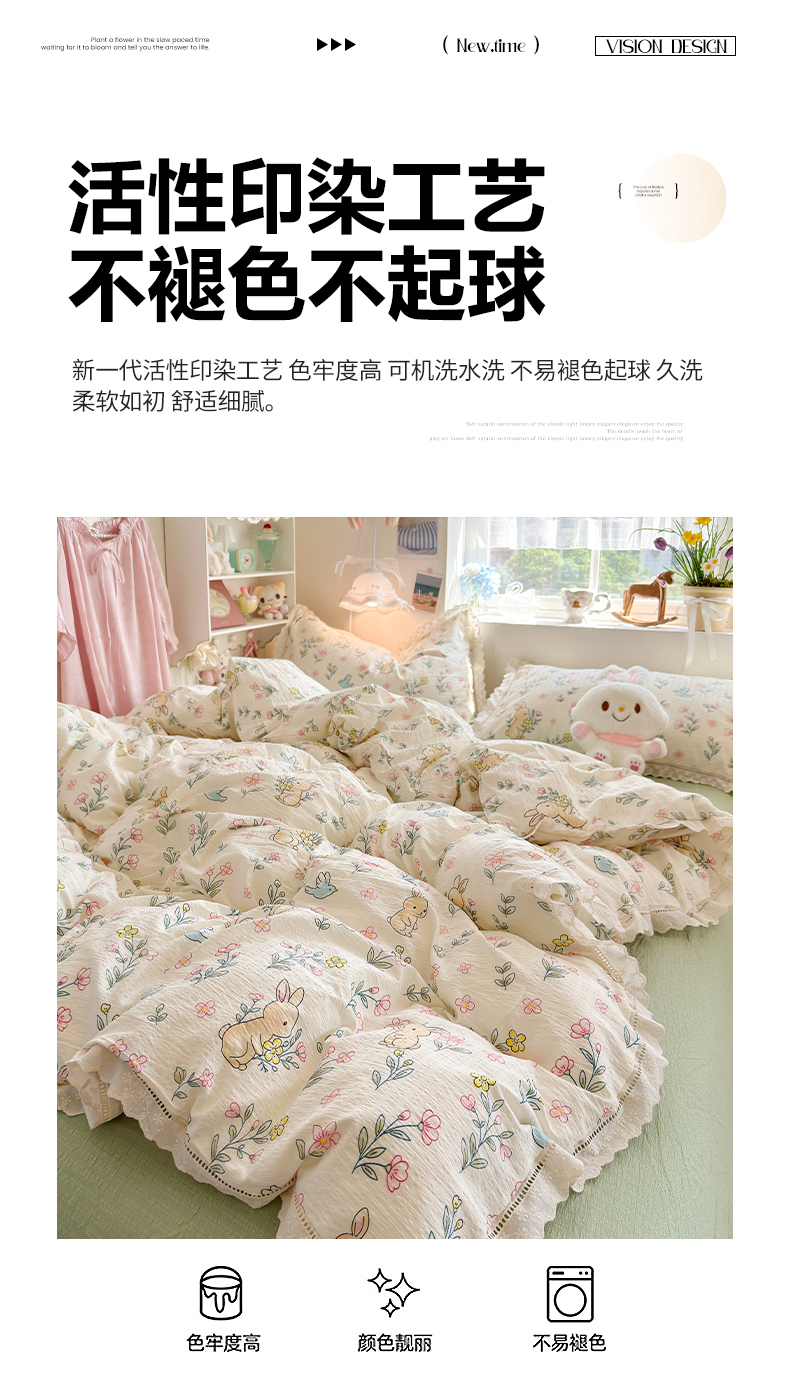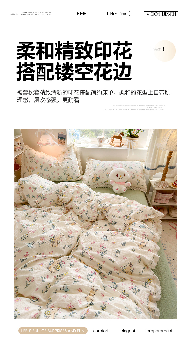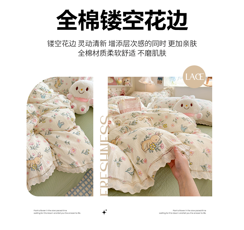 当前位置: 91家纺网 > 商品网购 > 床品套件 > 四件套 > 双层纱四件套 > 优卡迪家纺馆 2026新款全棉花边皱皱棉双层纱四件套下载文件包含买家秀 花园小兔