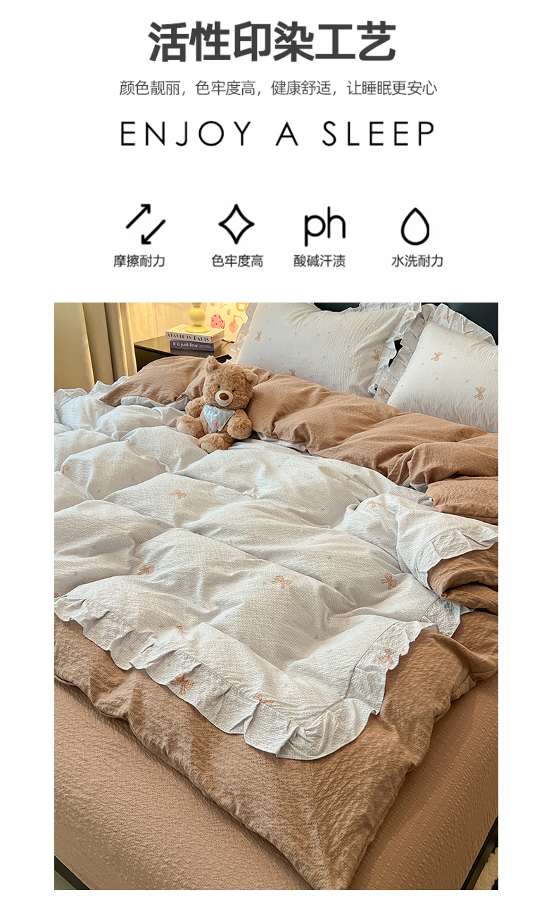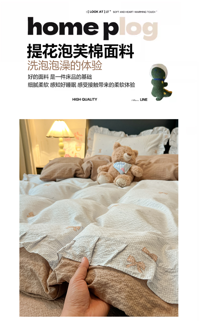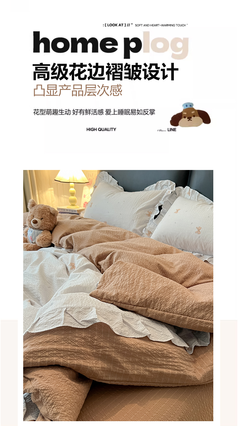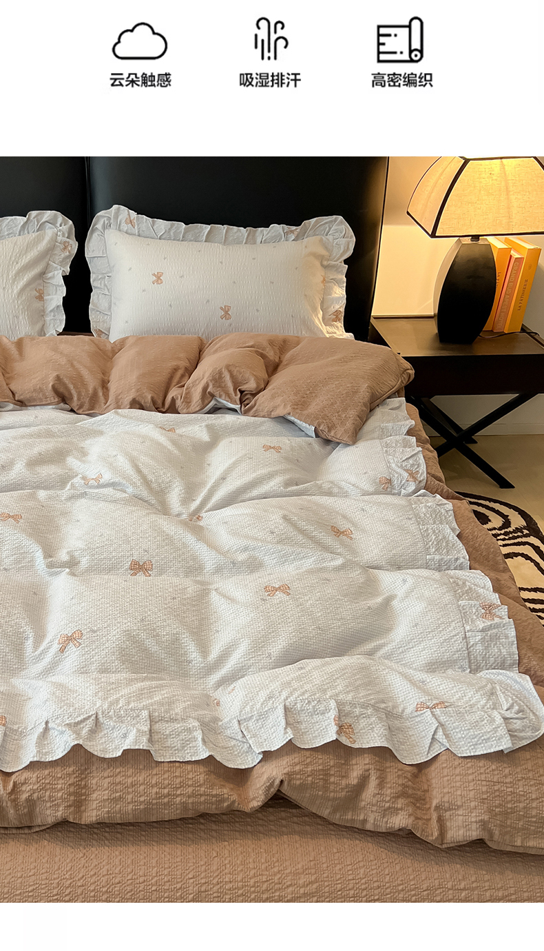 当前位置: 91家纺网 > 商品网购 > 床品套件 > 四件套 > 其它四件套 > 子钦家纺 2026春夏新款提花泡芙棉花边拼角工艺床单床笠四件套-卡哇伊 卡哇伊-童话世界
