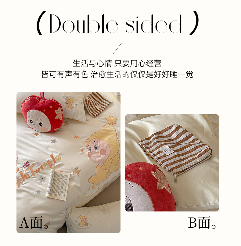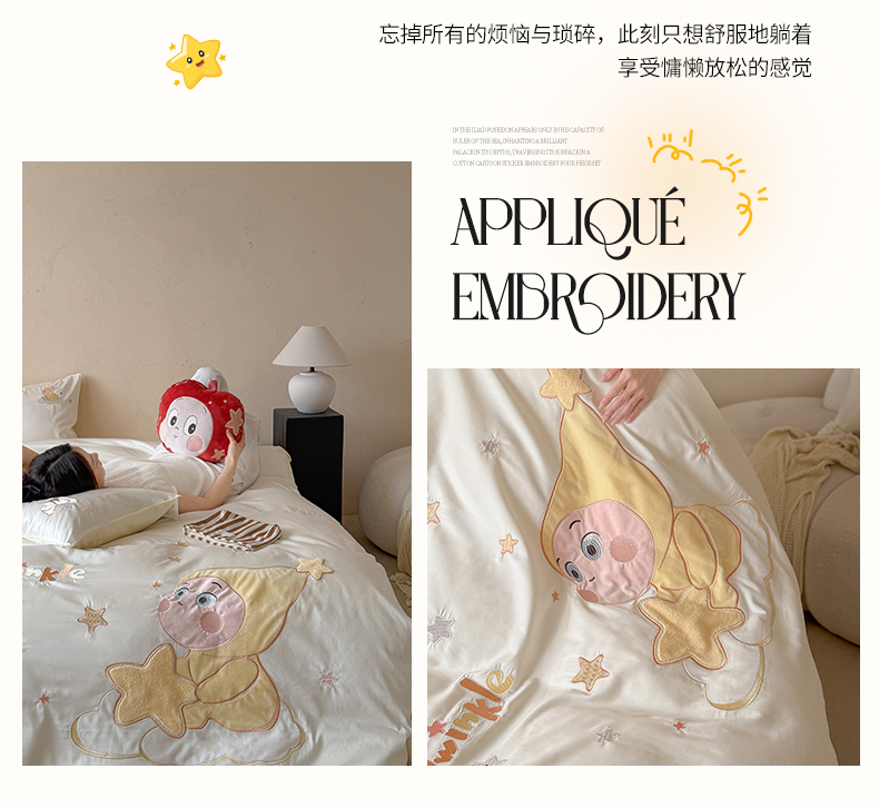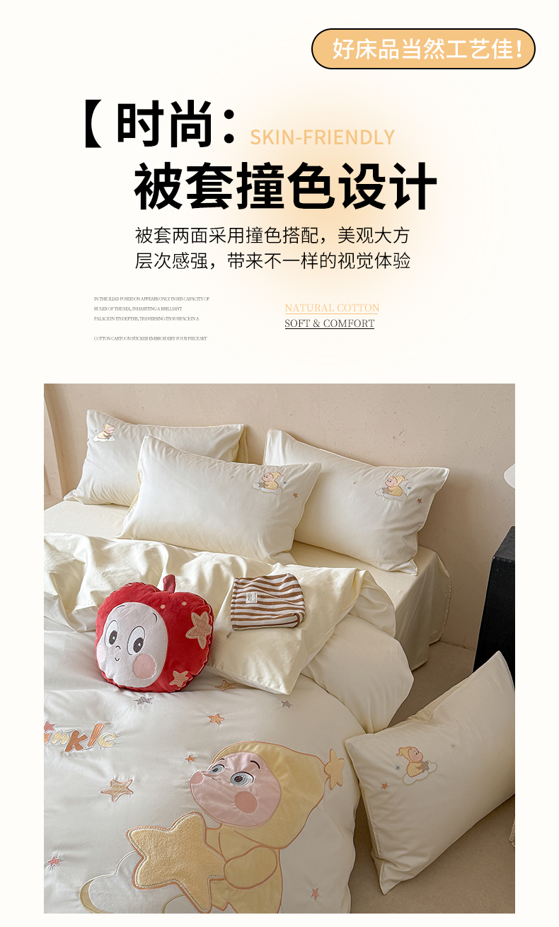 商品名称:优悦生活馆 2026新款全棉贴布绣四件套-萌萌星人 萌萌星人-白