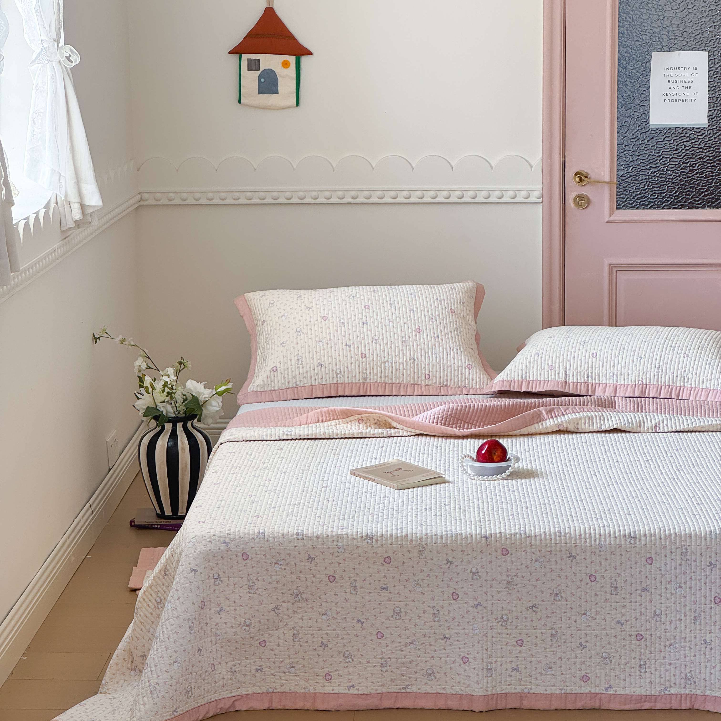 • 91家纺网 家纺一手货源 找家纺 (总)床盖工厂店 2026春夏新款双面全棉床盖三件套,沉香,海棠依旧,可爱星人,苹果小狗,清晨花语,小野花,小月黄,许许兔