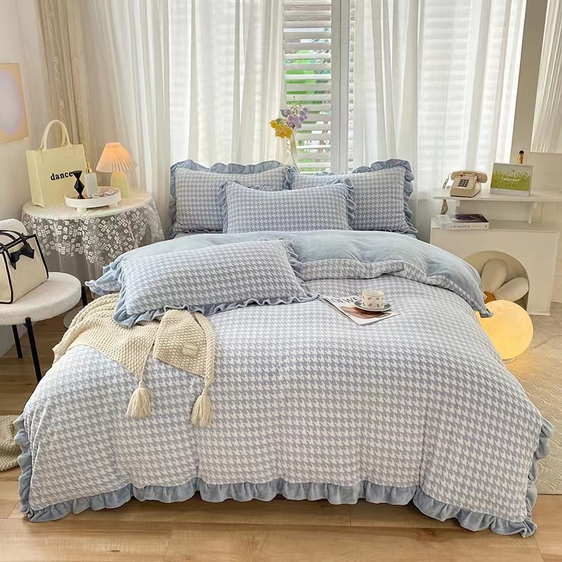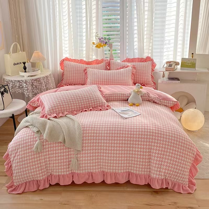牛奶绒 千鸟格图案 粉色 蓝色