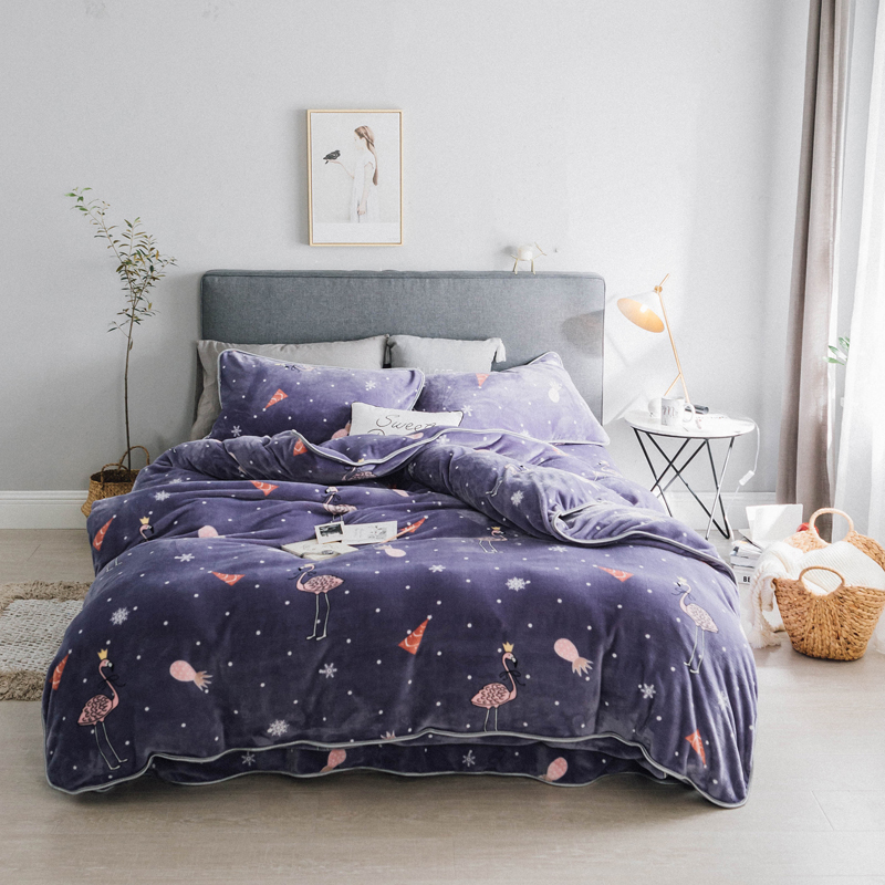 顾里家纺 圣诞系列牛奶绒套件圣诞火烈鸟