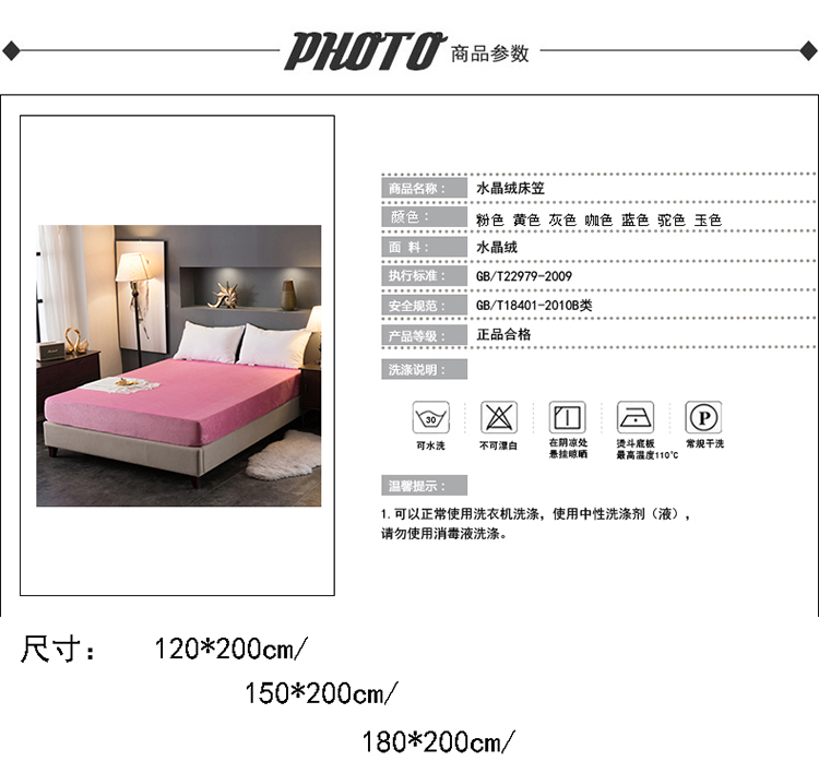 商品名称:(总)怡家居 2018新款水晶绒加厚保暖单品床笠