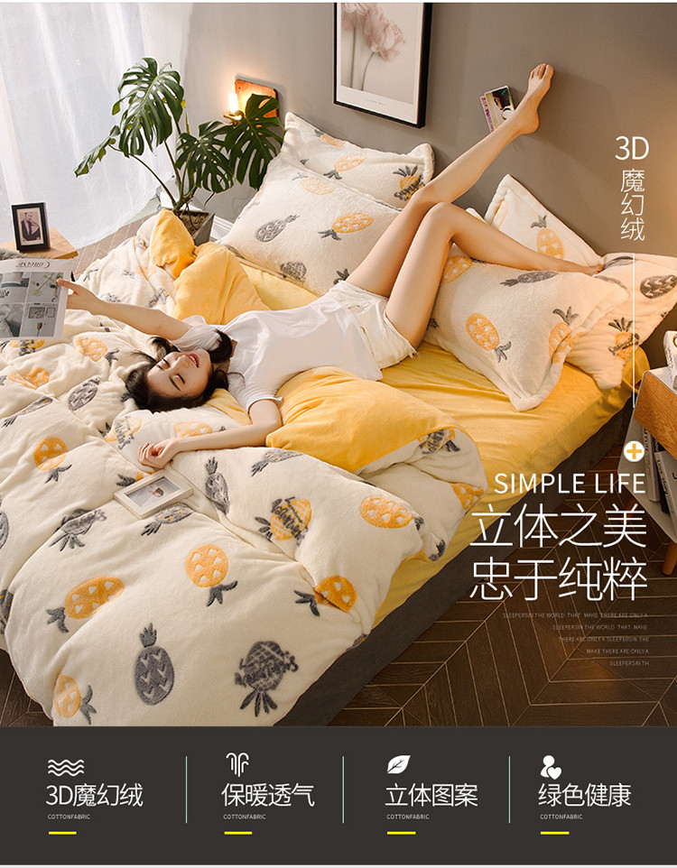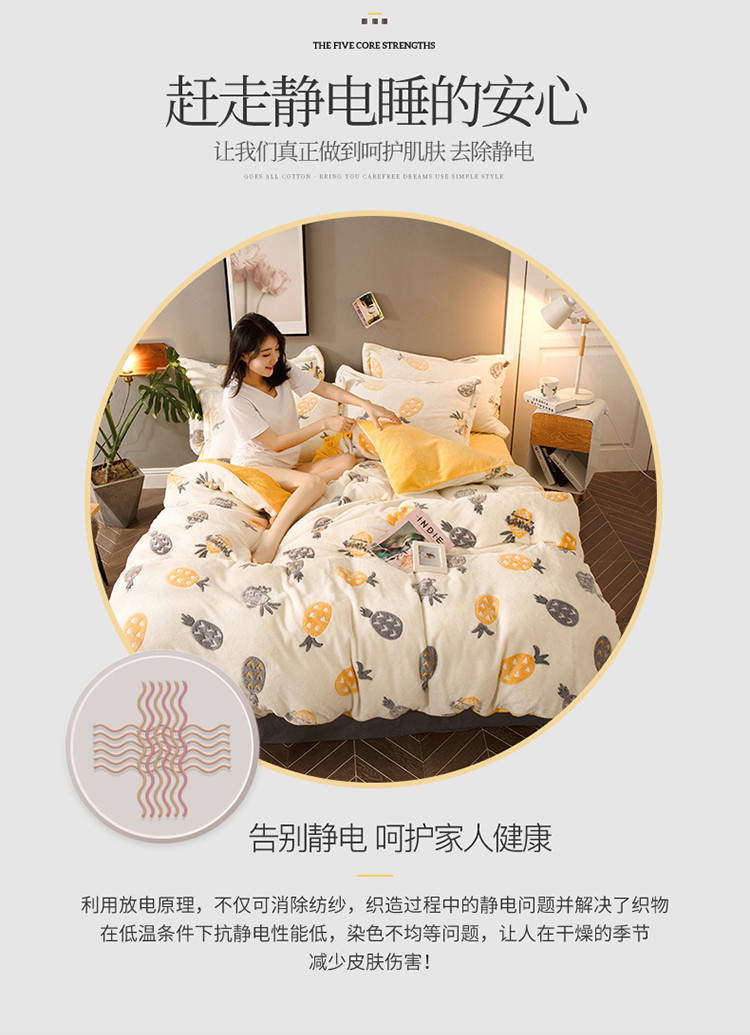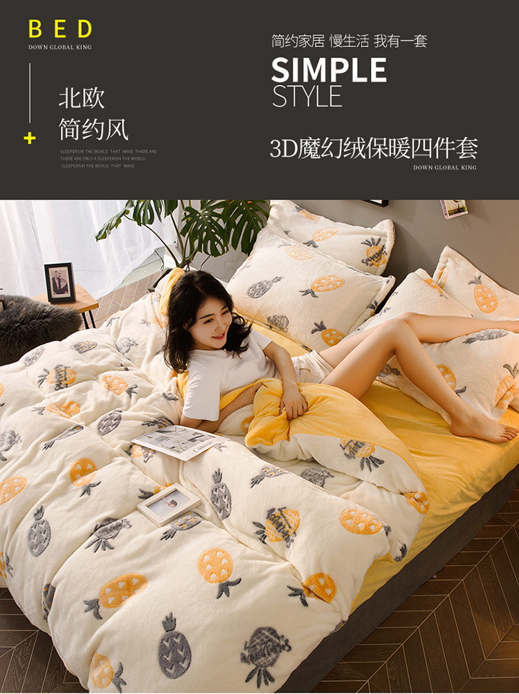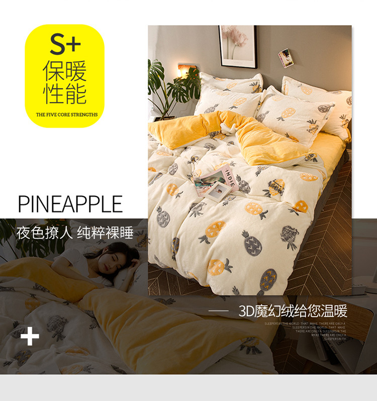 商品名称:佰亿莱 雪花绒四件套 菠萝梦想