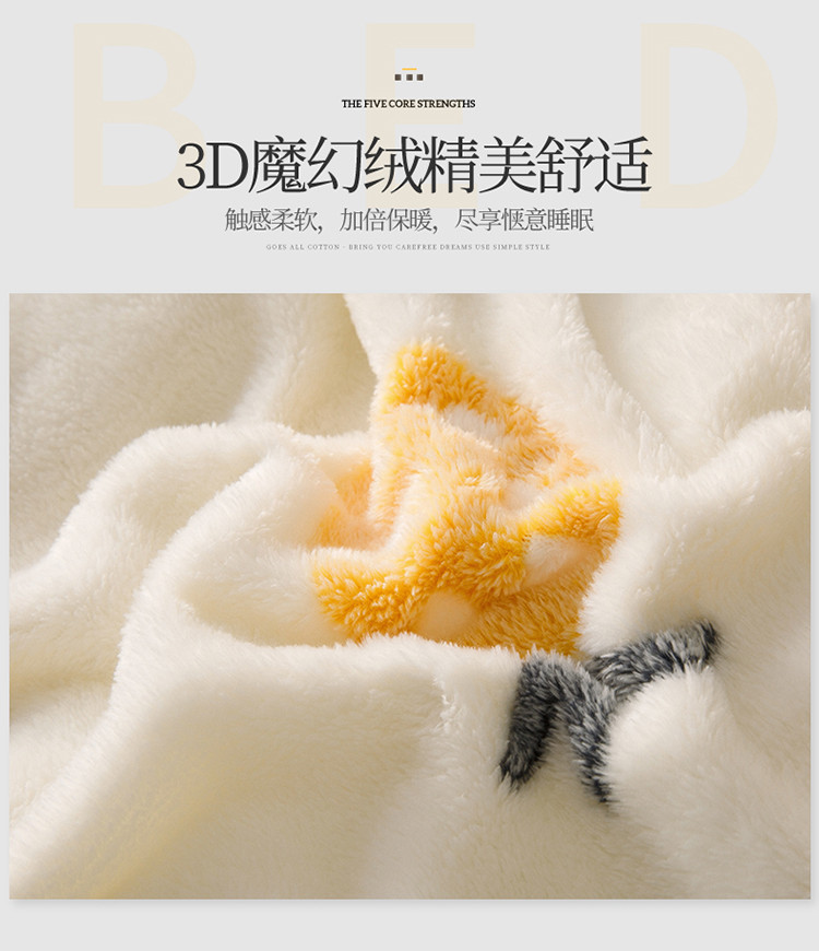 (总)佰亿莱 2025新款卡通萌趣半边绒毛毯,繁花,吉象如意,卡瑞克,猫咪日记,棋盘格,甜心魔法,中古花