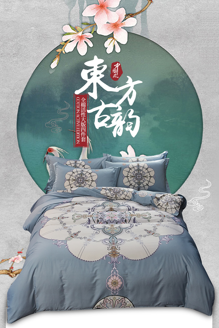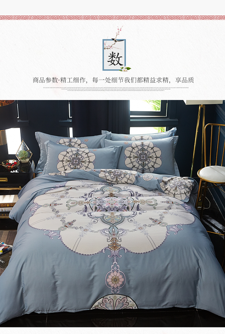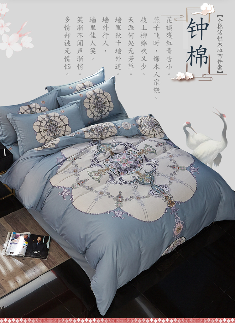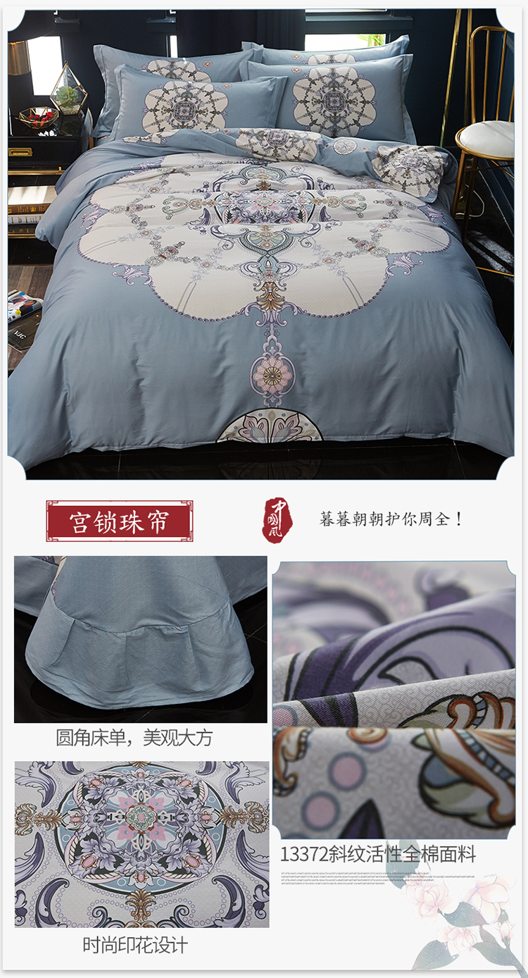 商品名称:雲归梦 2019全棉活性大版中国风花卉四件套 宫锁珠帘