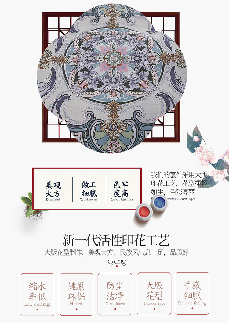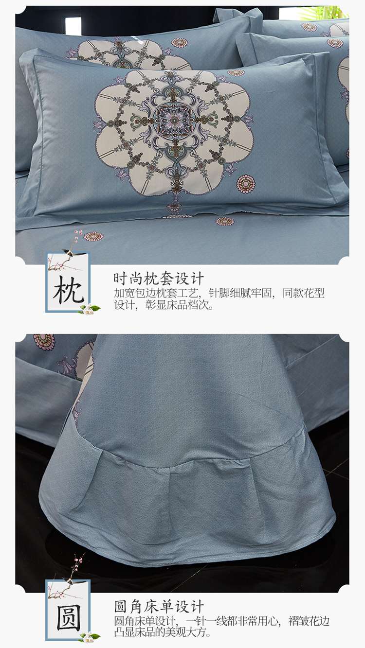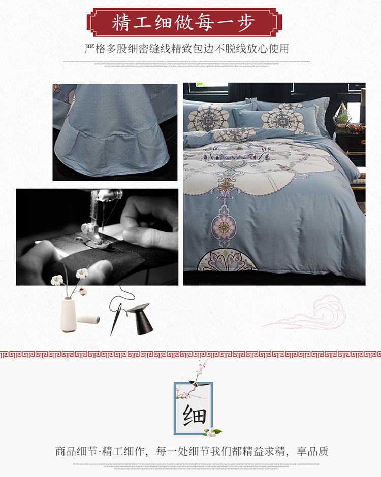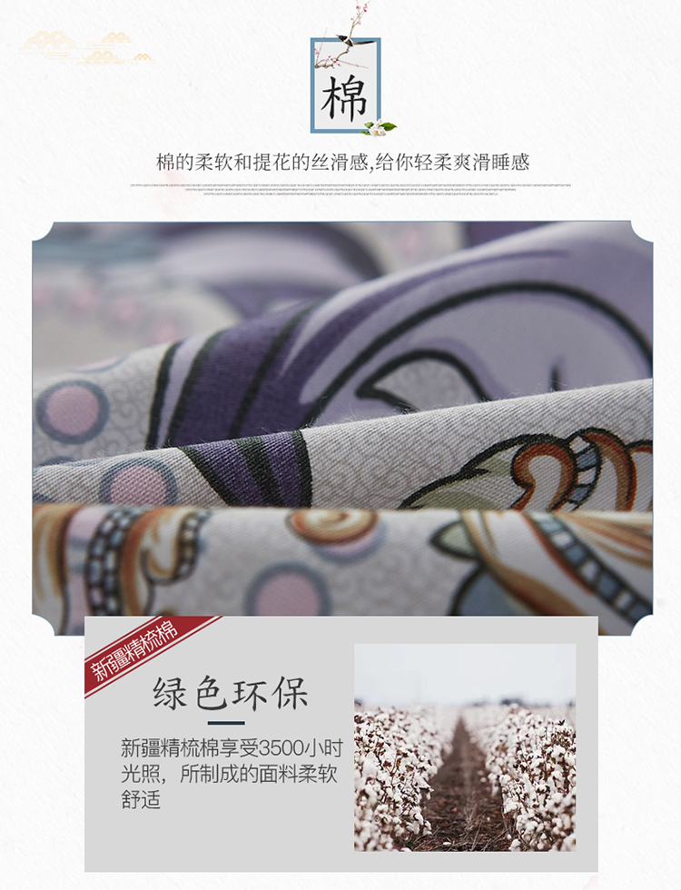 商品名称:雲归梦 2019全棉活性大版中国风花卉四件套 宫锁珠帘