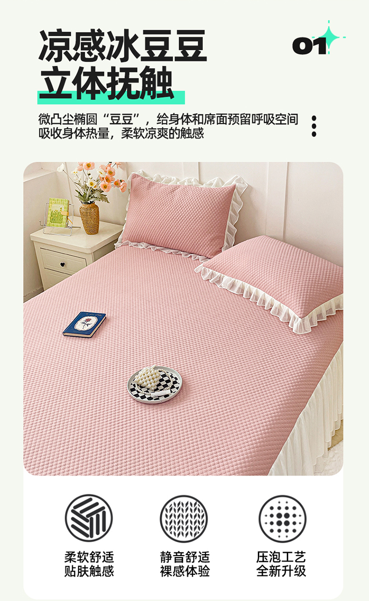 (总)2025云母3D凉感冰豆豆凉席空调席床群款三件套床笠款凉席(保证不起球),凉感冰豆豆席-粉(床裙款),凉感冰豆豆席-浅黄(床裙款),凉感冰豆豆席-浅灰(床裙款),凉感冰豆豆席-浅蓝(床裙款),凉感冰豆豆席-浅緑(床裙款),凉感冰豆豆席-浅紫(床裙款),凉感冰豆豆席-青緑(床裙款)