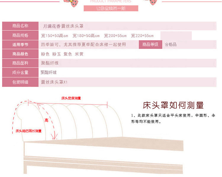 商品名称:情恒家纺 2019蕾丝床头罩大靠背靠垫月满花香系列 粉色