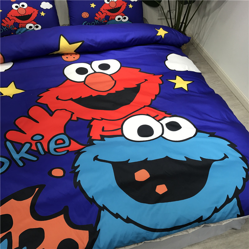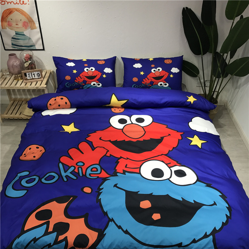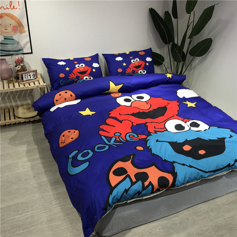 芊芷萱家纺 2019新款卡通芝麻街水洗真丝四件套