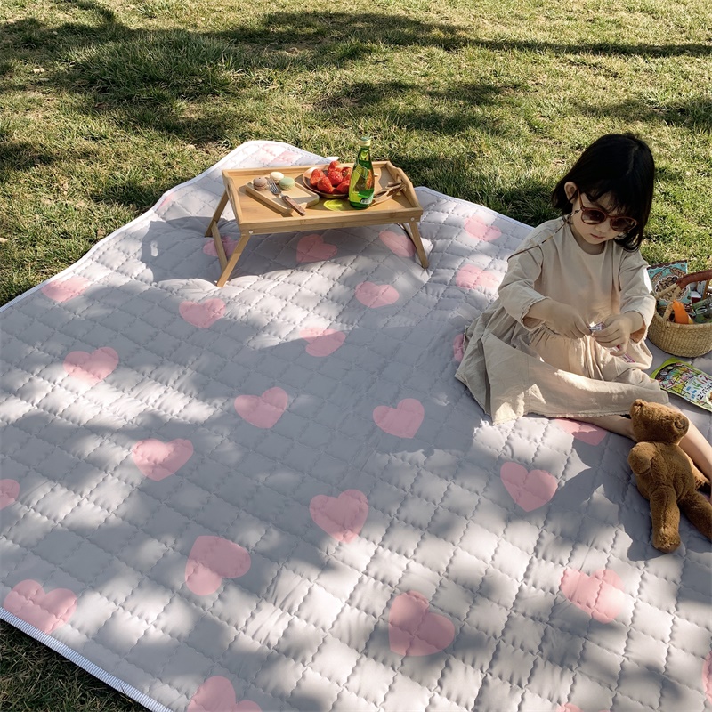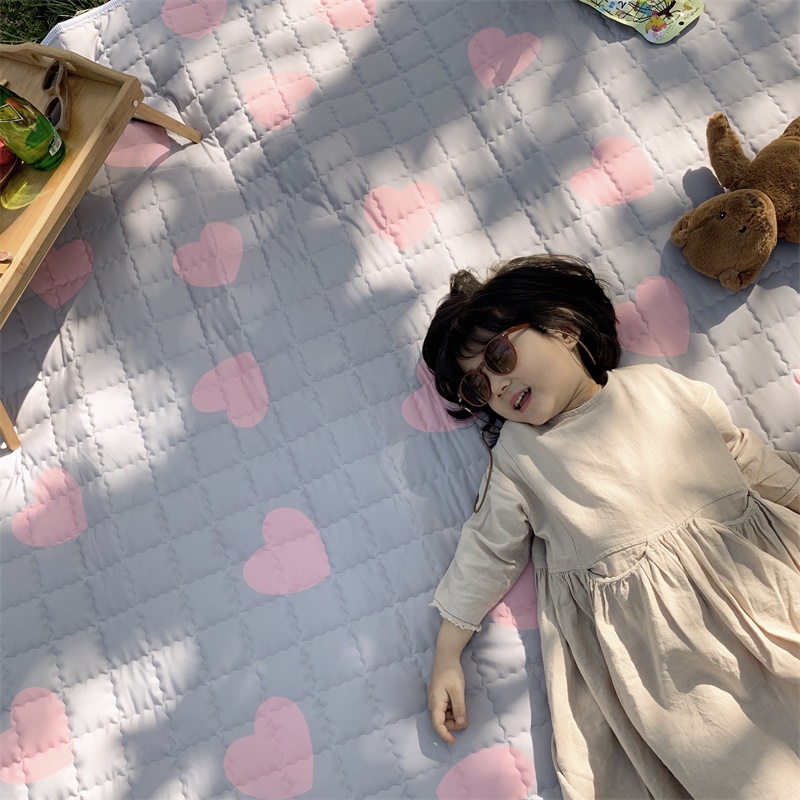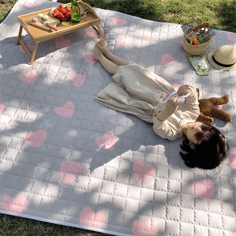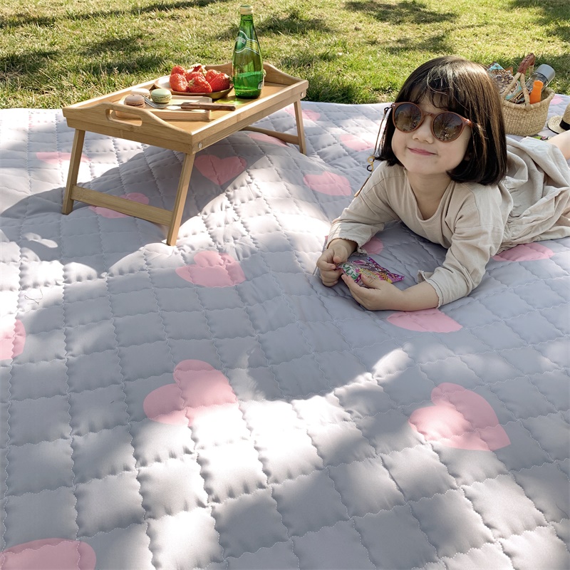 昔可家纺 2019新款野餐垫 灰底粉心