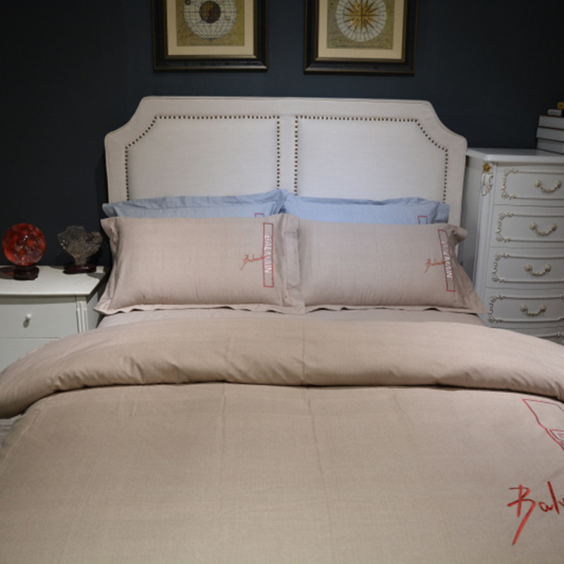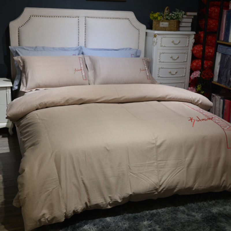 总玖玖爱家纺 纯棉100支贡缎长绒棉刺绣被套三件套四件套加大四件套,白色,高级灰,卡其,蓝灰,绿色,浅桔,深蓝,紫豆沙