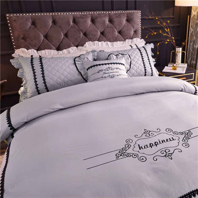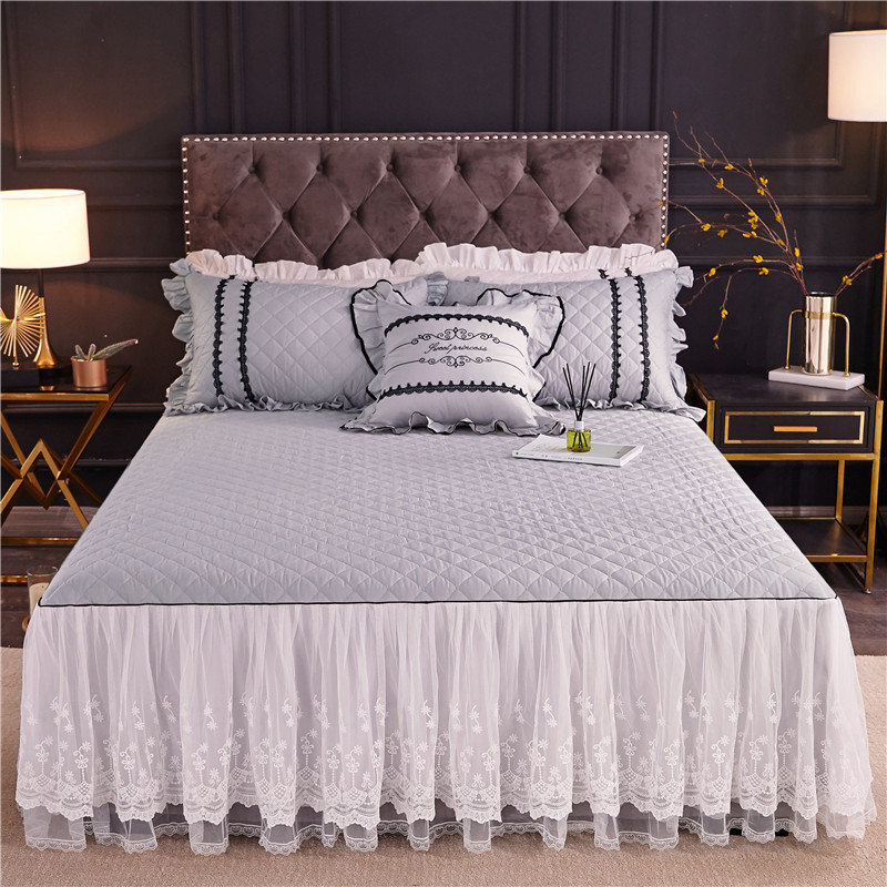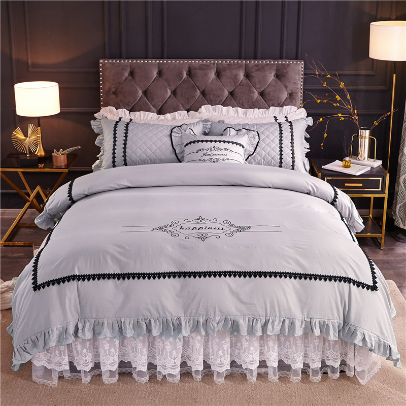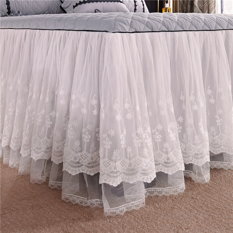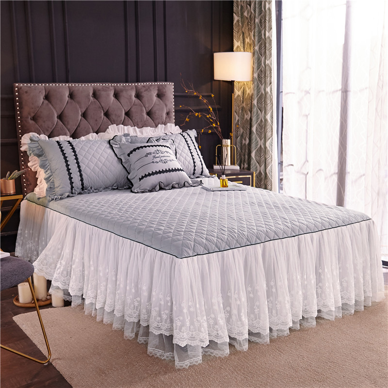 当前位置: 91家纺网 > 商品网购 > 床品套件 > 四件套 > 全棉普通四件套 > 2021菊上-全棉刺绣蕾丝床裙款四件套单层夹棉双款式月光银