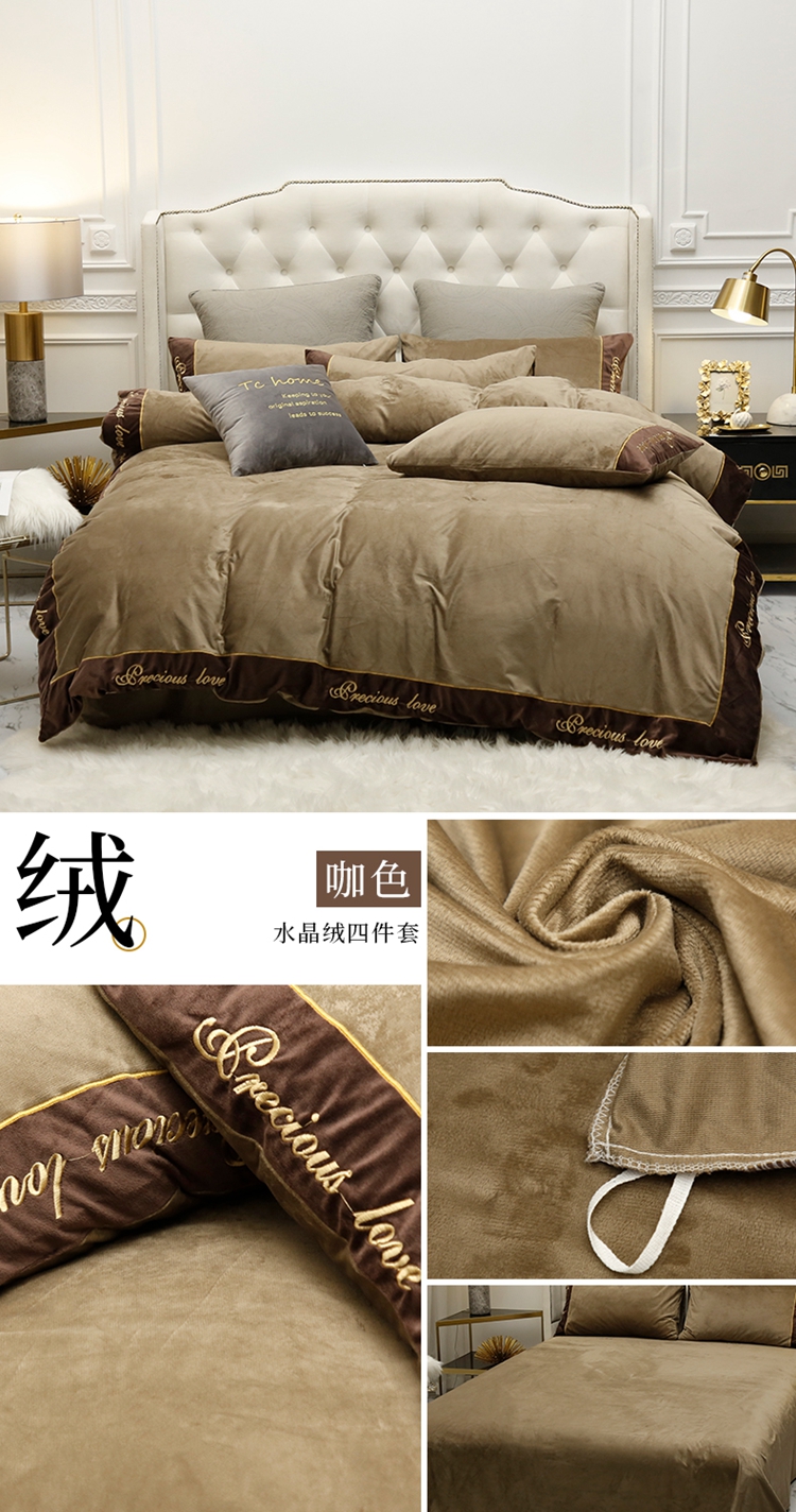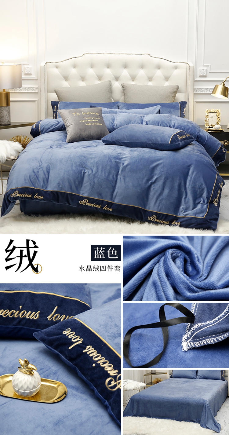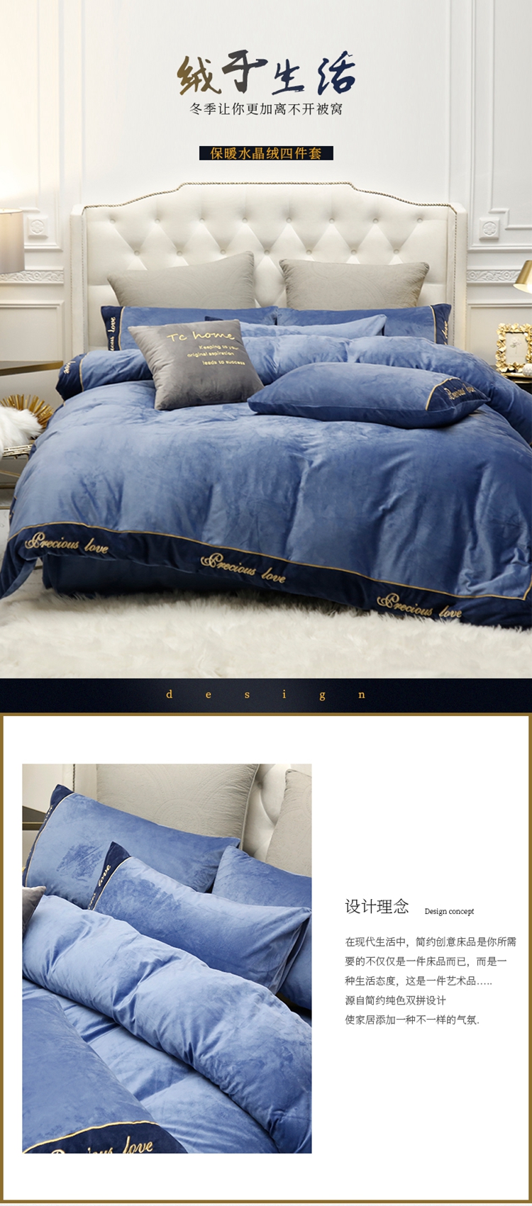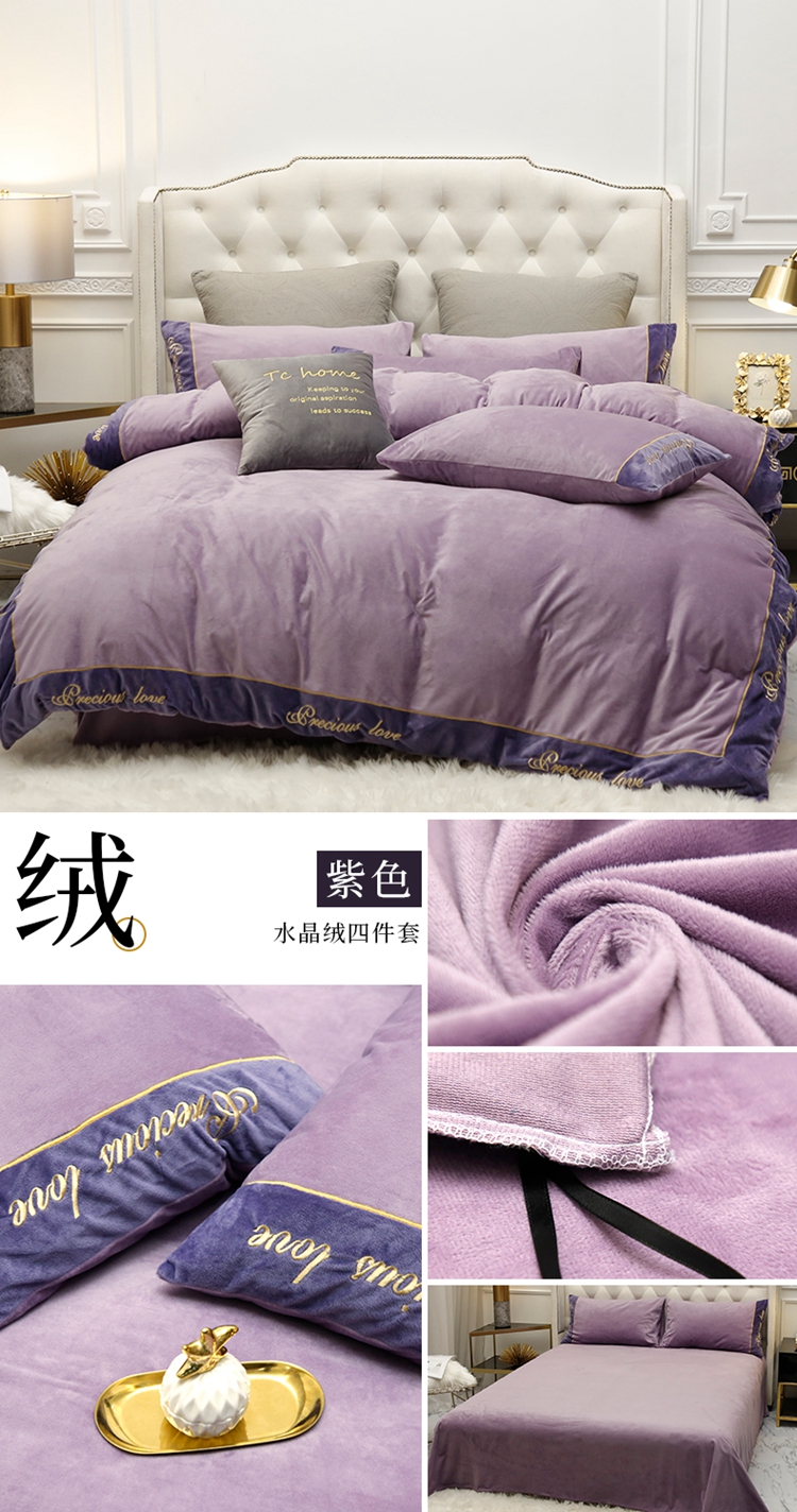 (总)米奈 绣花贴边挚爱系列水晶绒四件套法莱绒