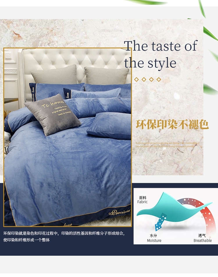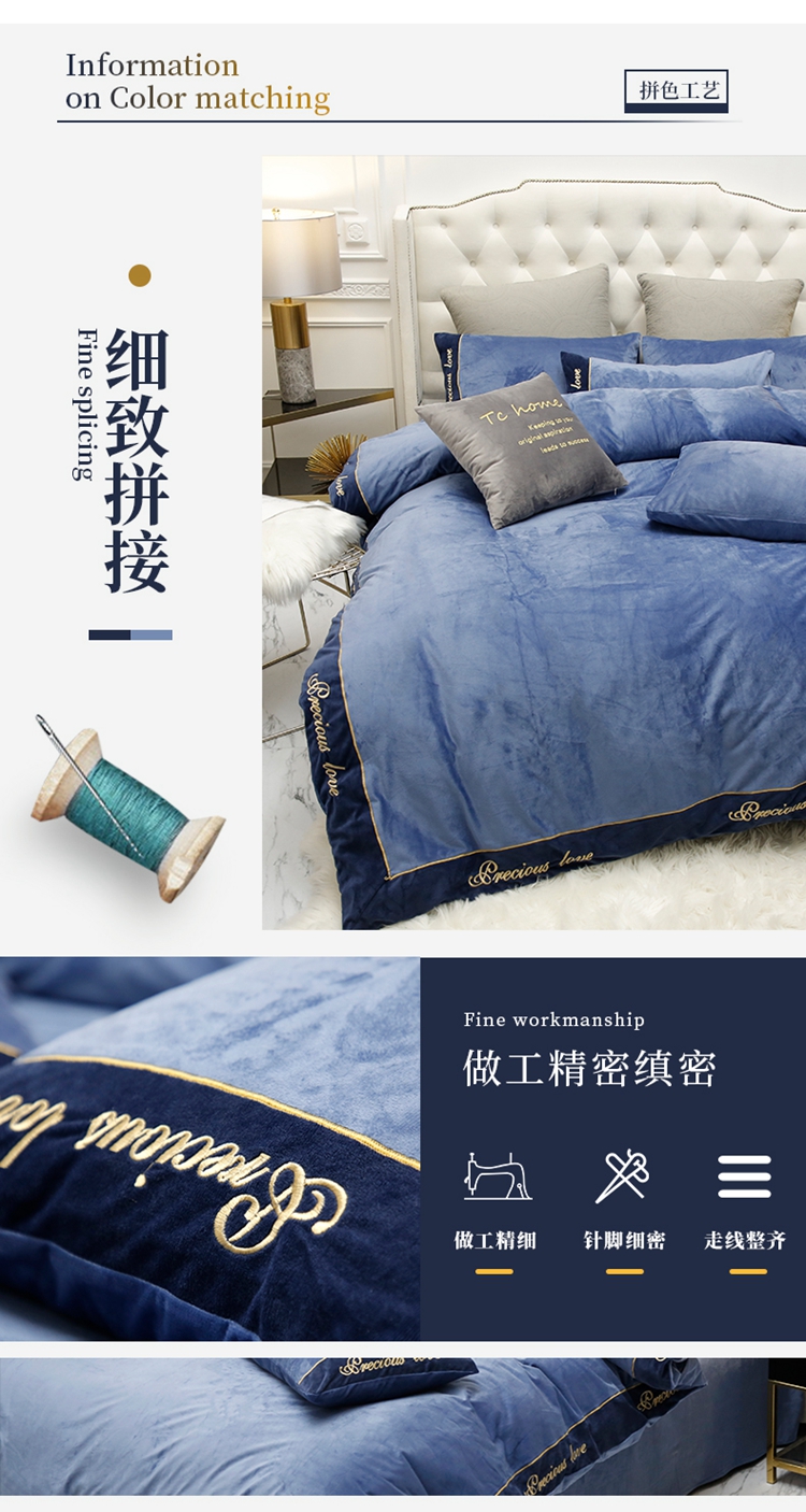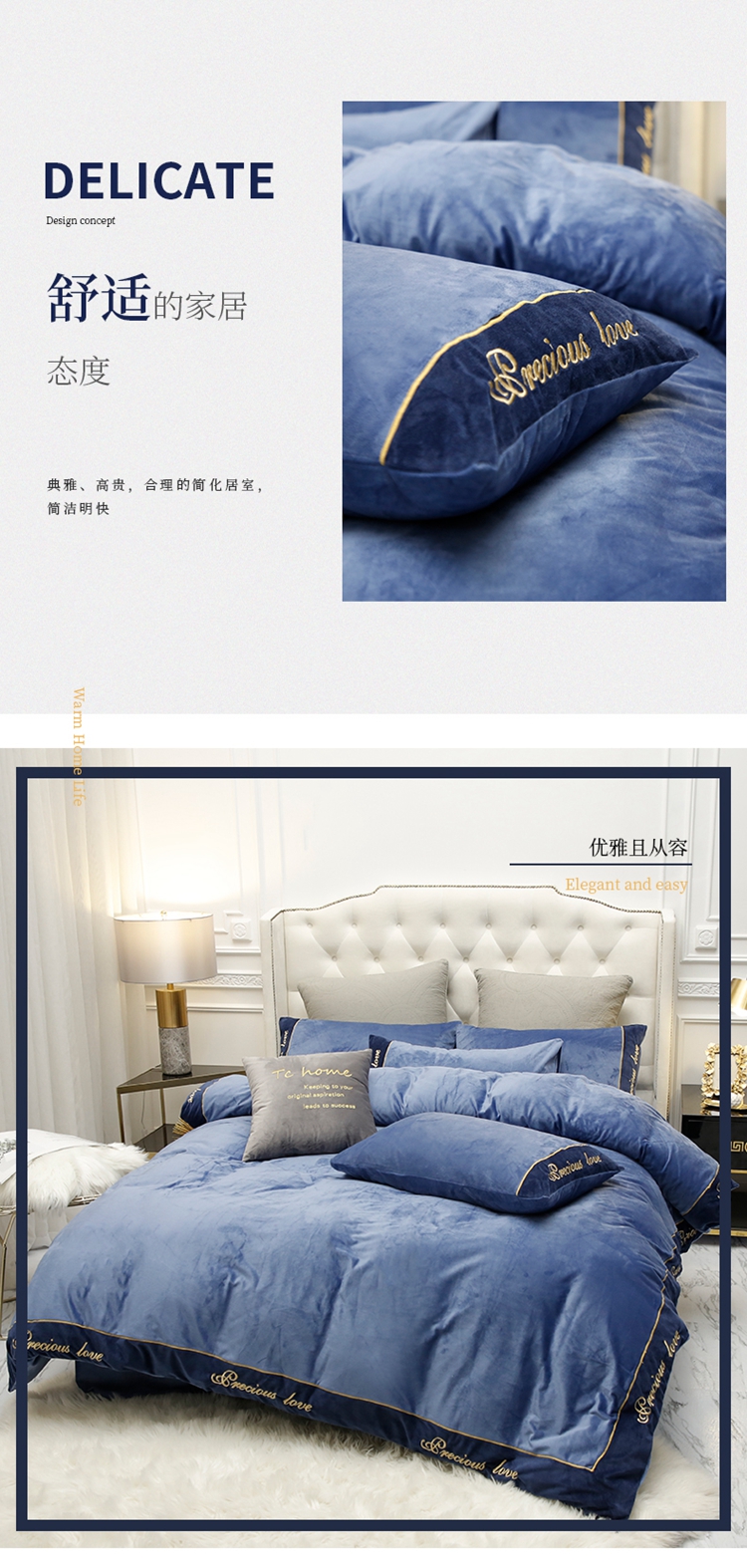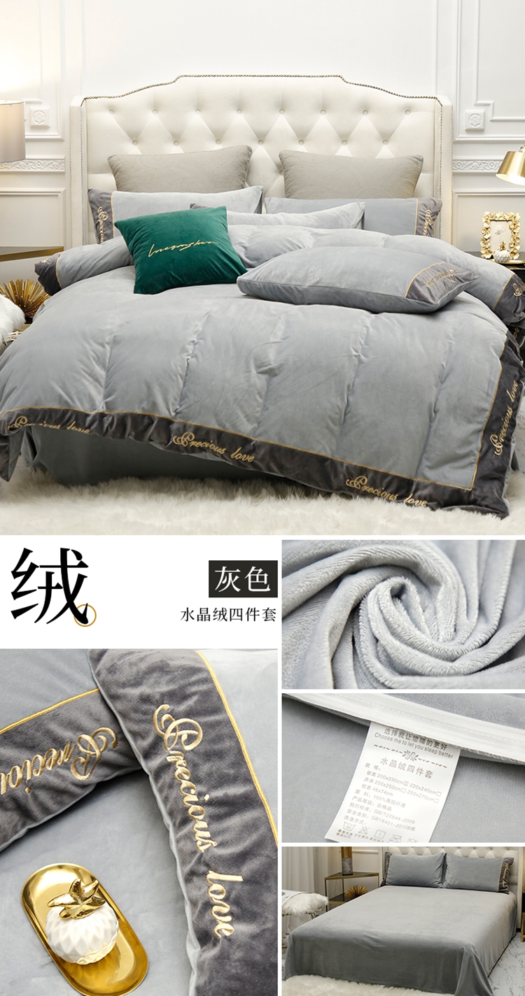 (总)米奈 绣花贴边挚爱系列水晶绒四件套法莱绒