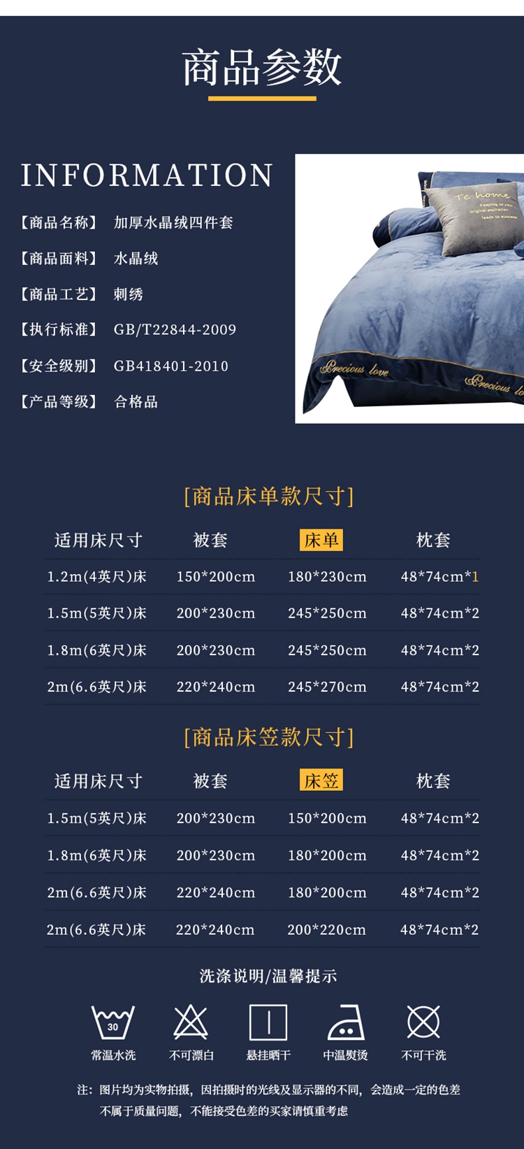 商品名称:(总)米奈 绣花贴边挚爱系列水晶绒四件套法莱绒