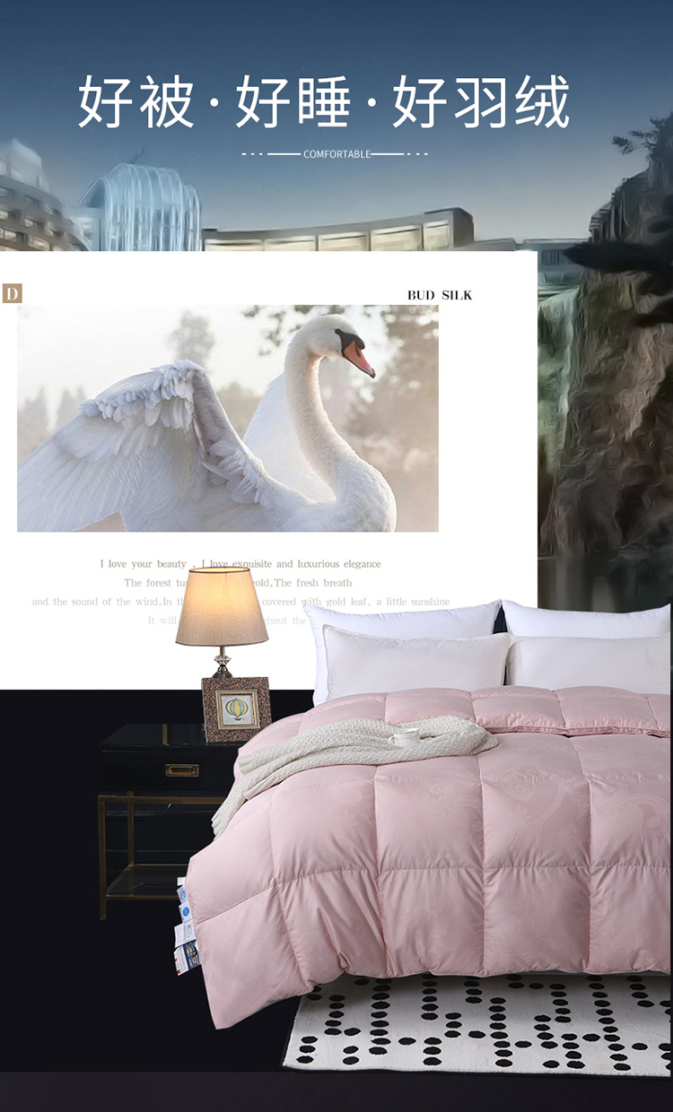总绒研羽绒 2025魅力人生真丝大提花鹅绒被羽绒被冬被被子,灰色,藕粉,香槟色