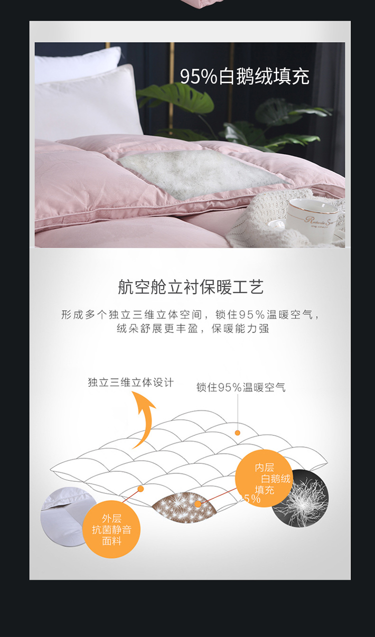 (总)绒研羽绒 2025新款60支长绒棉95白鹅绒立体扭花被,白色,灰色,豆沙