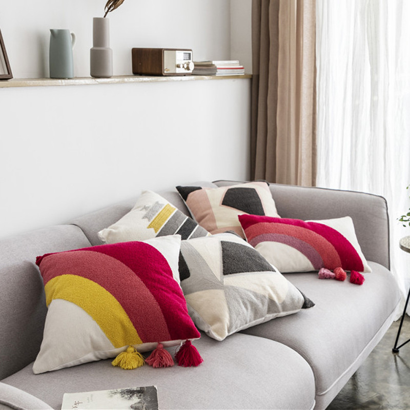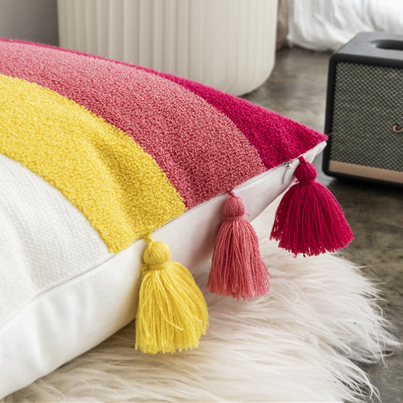 (总)918拾朵家居 2025新款热卖流苏抱枕,波浪纹(A款),波浪纹(B款),侧边流苏(黄色),侧边流苏(绿色)