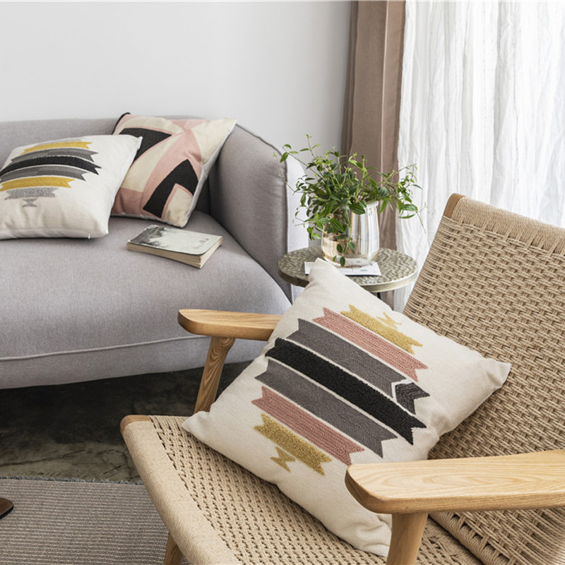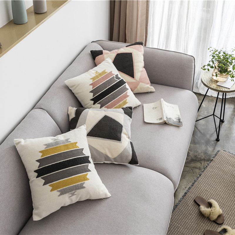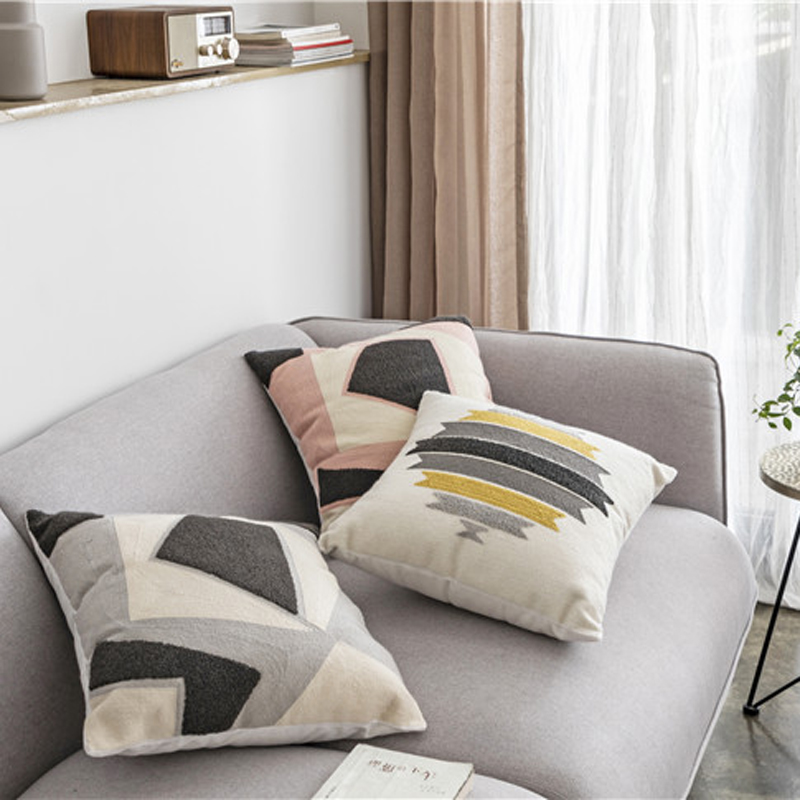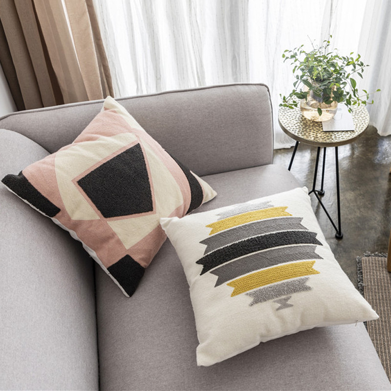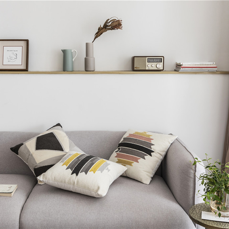 (总)918拾朵家居 2023新款简约风圈绒刺绣抱枕,灰咖(方),灰咖(长),洋橘(方),洋橘(长)