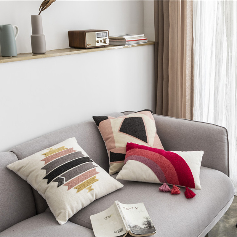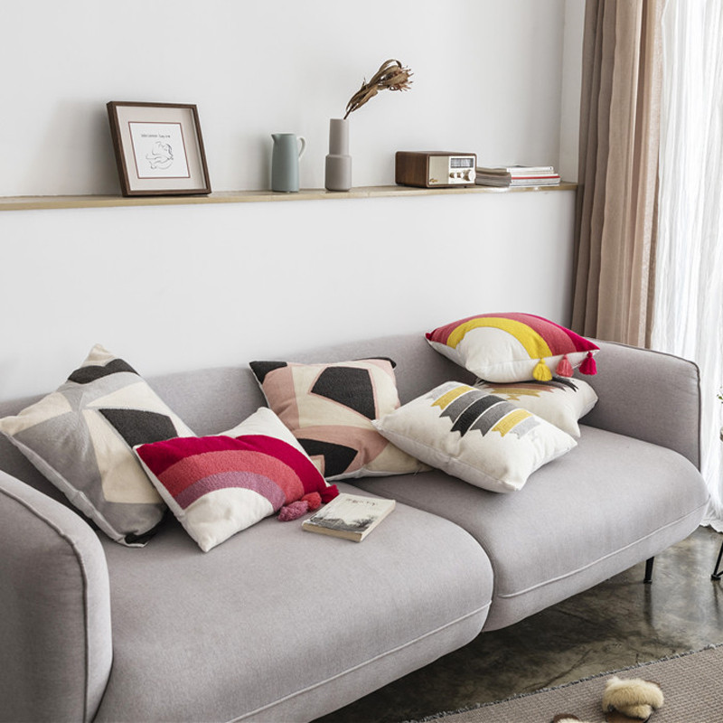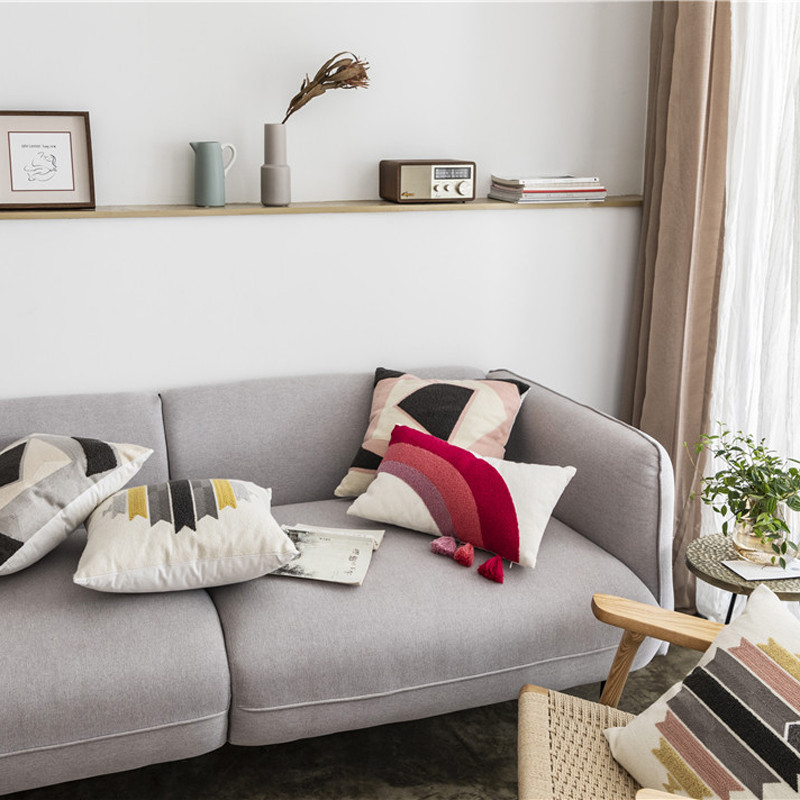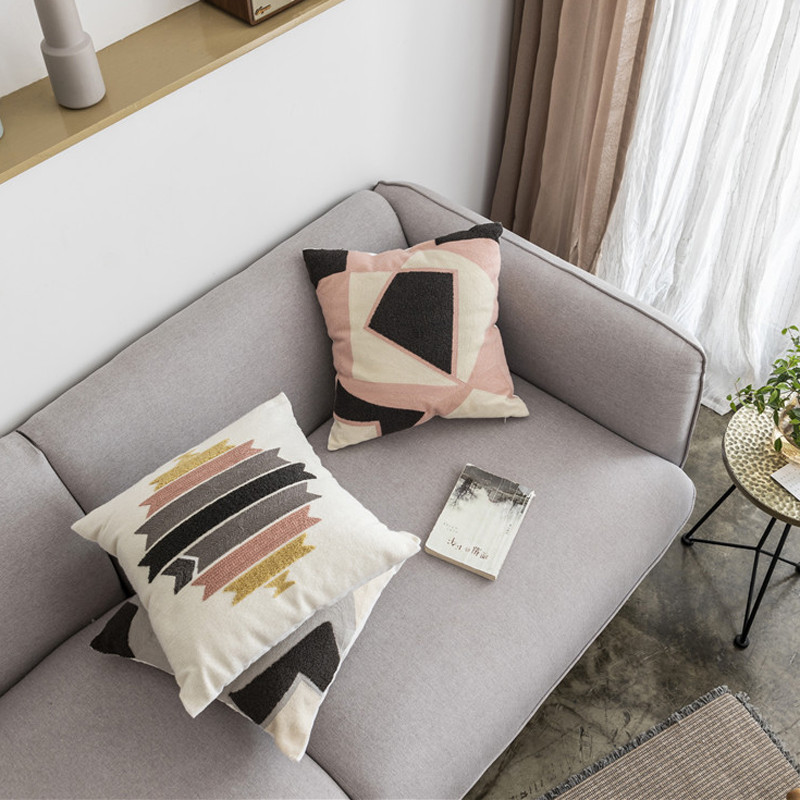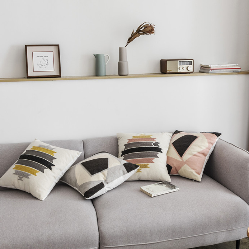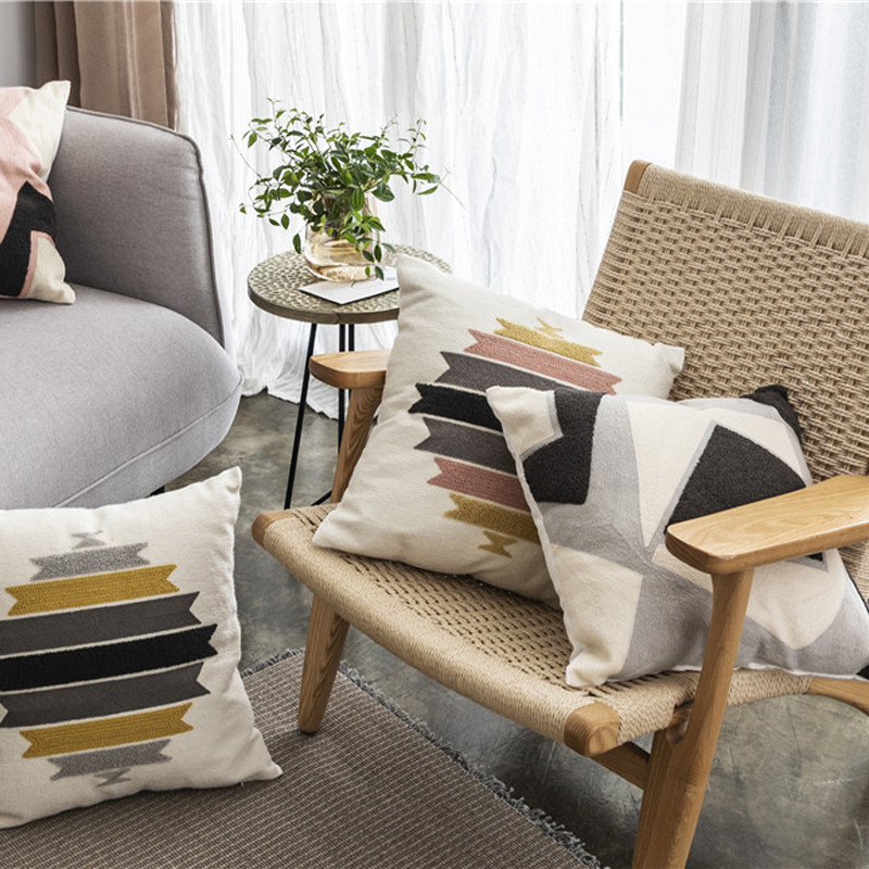 (总)918拾朵家居 2023新款简约风圈绒刺绣抱枕,灰咖(方),灰咖(长),洋橘(方),洋橘(长)
