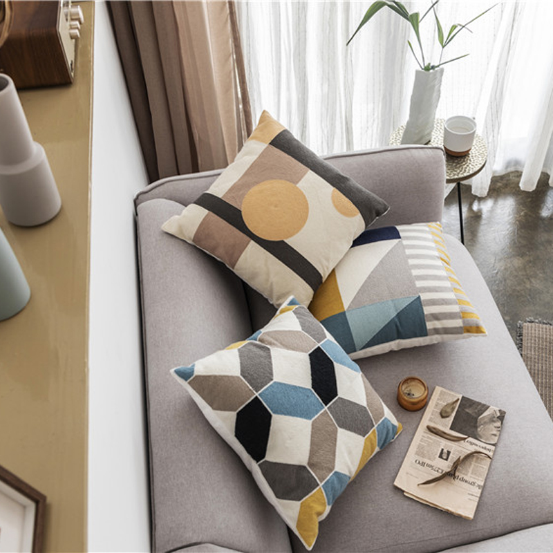 (总)918拾朵家居 2023新款简约风圈绒刺绣抱枕,灰咖(方),灰咖(长),洋橘(方),洋橘(长)