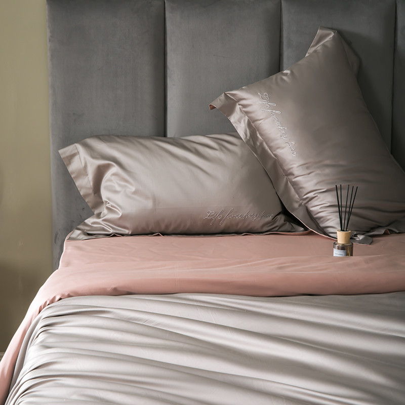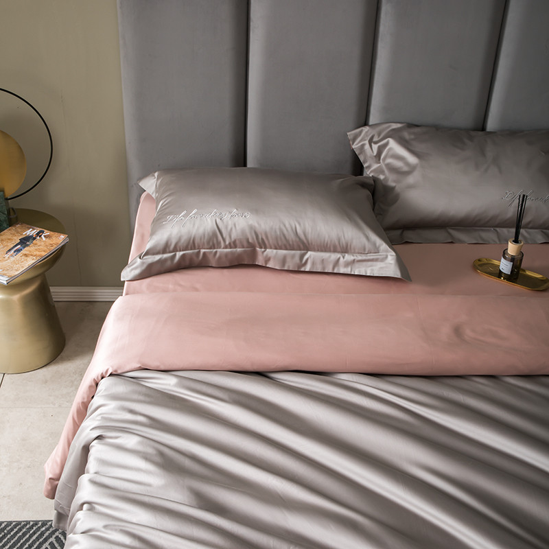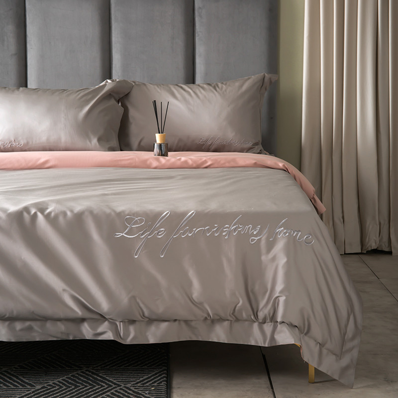 商品名称:太古汇 双股纯色双拼绣花宽边四件套 冰灿银