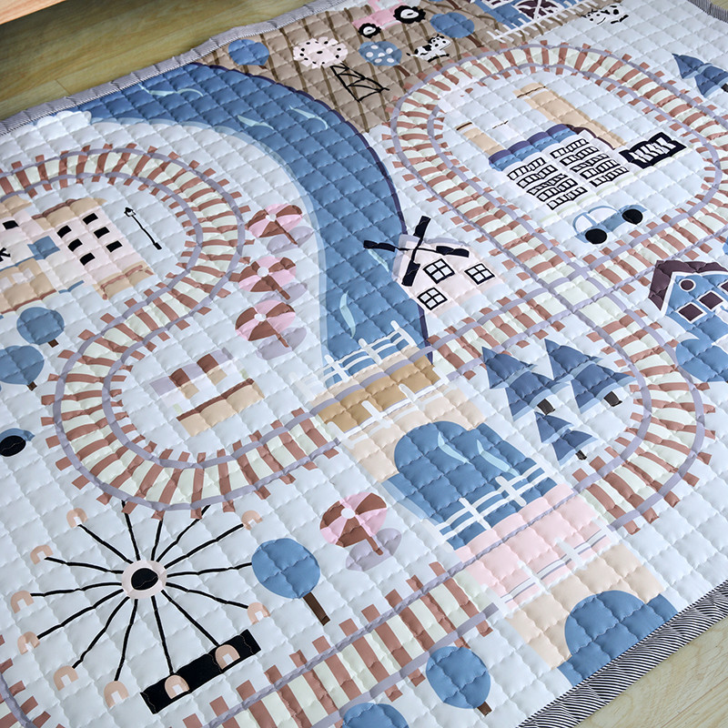 商品名称:沁童家纺 北欧风长方形加厚地垫儿童爬爬垫栅栏小镇蓝