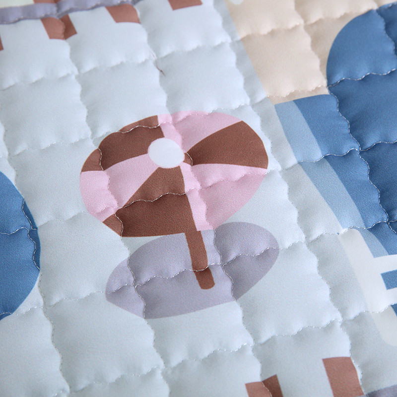沁童家纺 北欧风长方形加厚地垫儿童爬爬垫栅栏小镇蓝