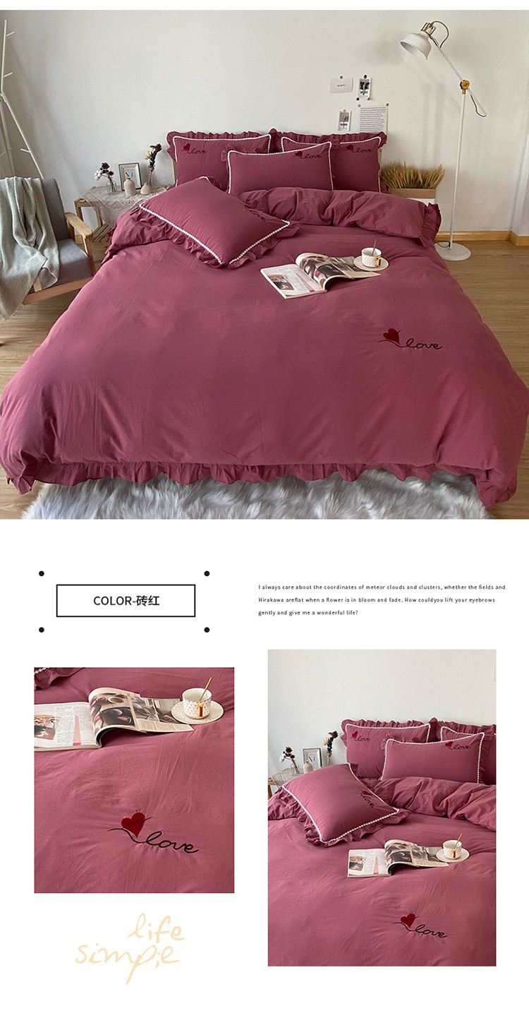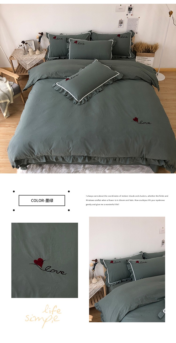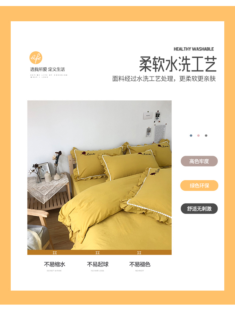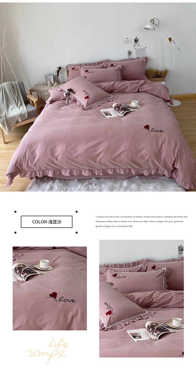 (总)眠屿 2022新款绣花水洗棉四件套花之润,花之润-浅粉,花之润-浅绿