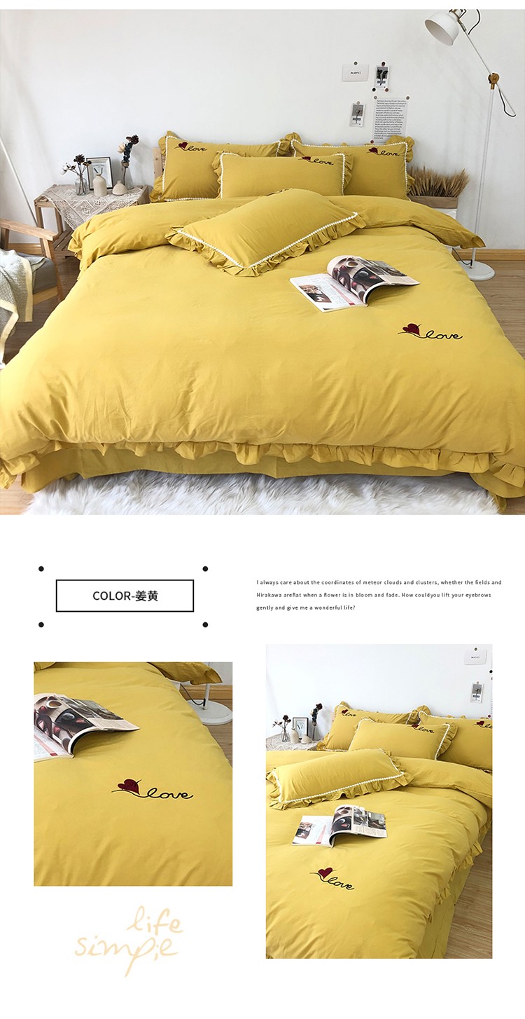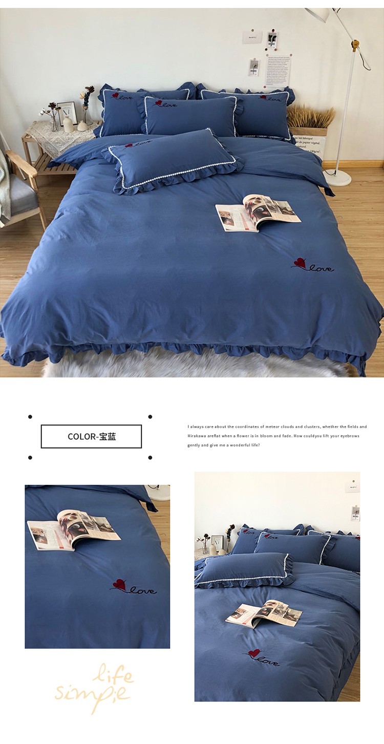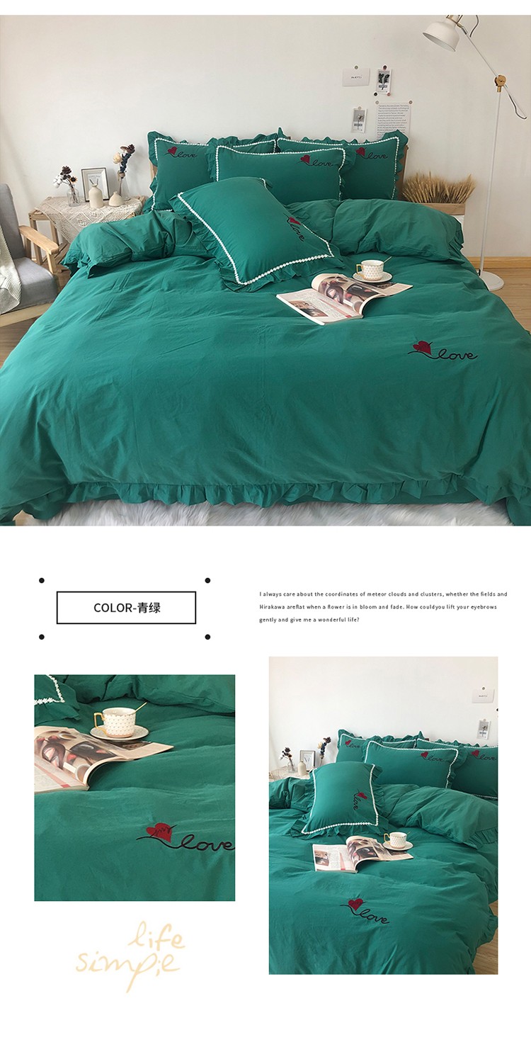 (总)眠屿 2022新款韩国绒绣花四件套-爱心熊,宝石蓝,豆沙粉,芥末绿,奶茶咖