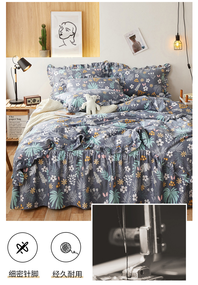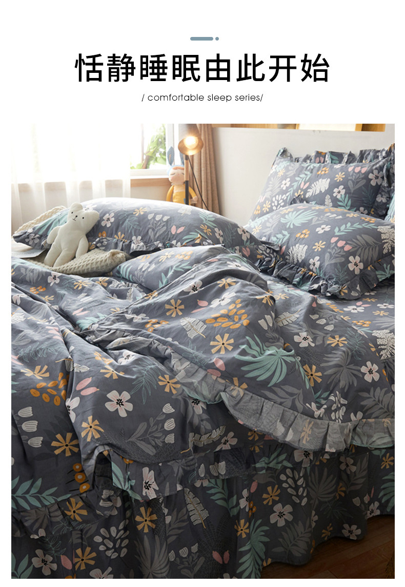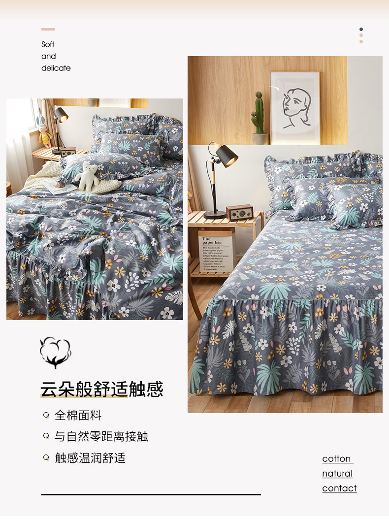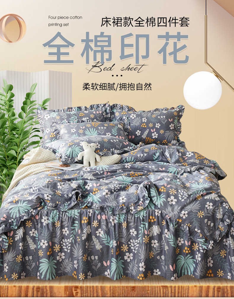 当前位置: 91家纺网 > 商品网购 > 床品套件 > 四件套 > 全棉普通四件套 > 十个点家纺 2020新款印花床裙四件套雾里看花