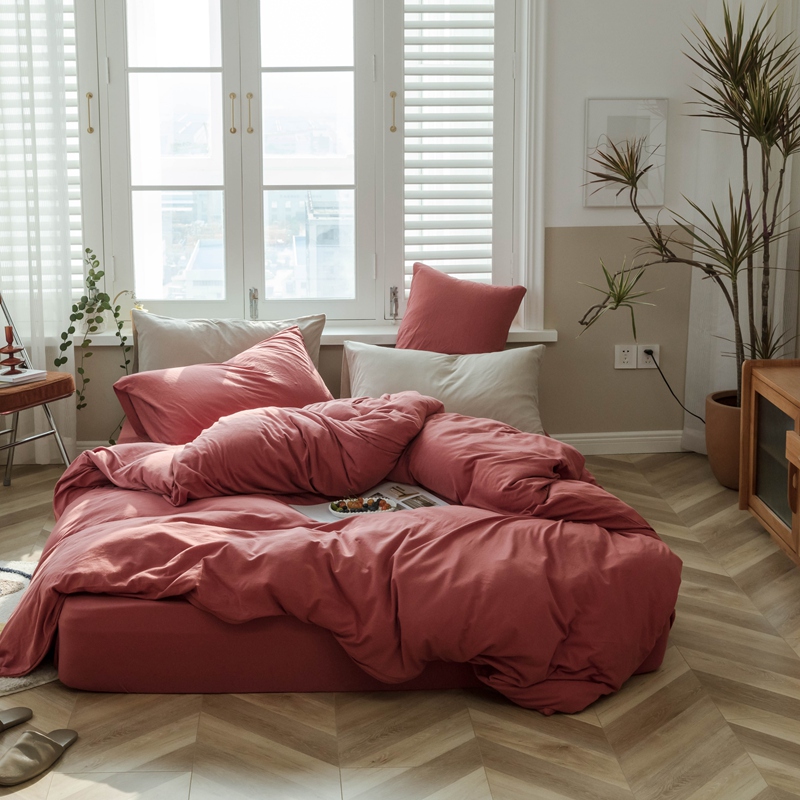 (总)华超针织 2025新款亲肤舒适全棉纯棉针织五件套四件套,奶糖+樱桃,杏粉+花田,杏灰+玫瑰