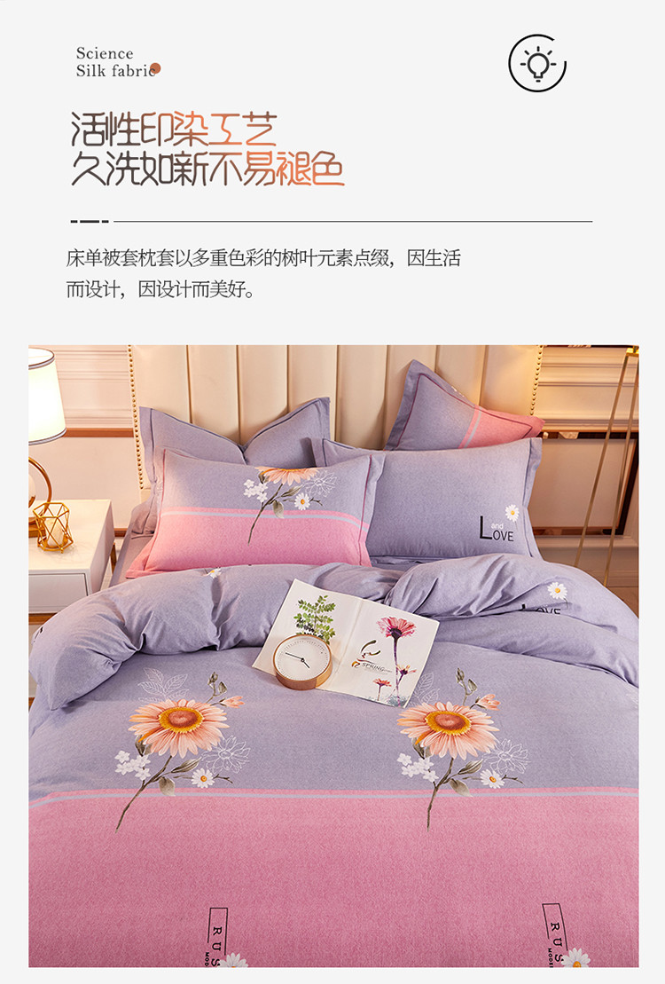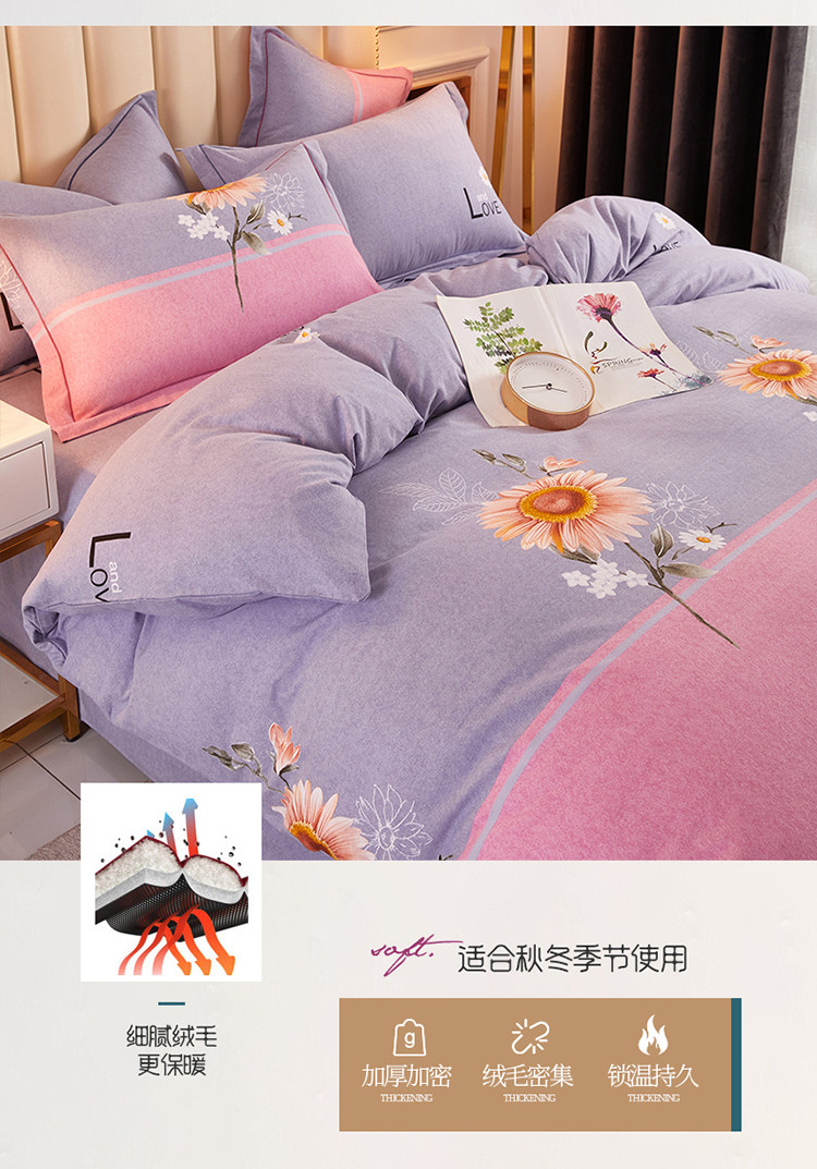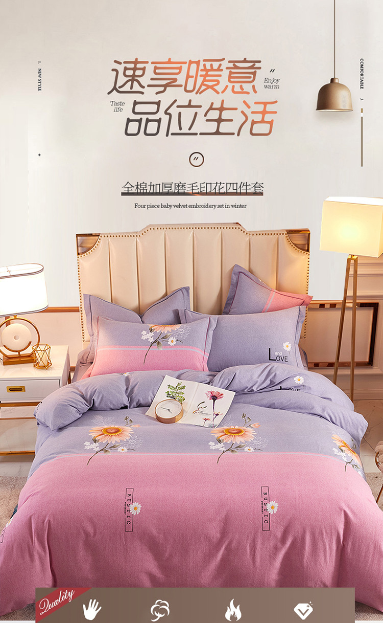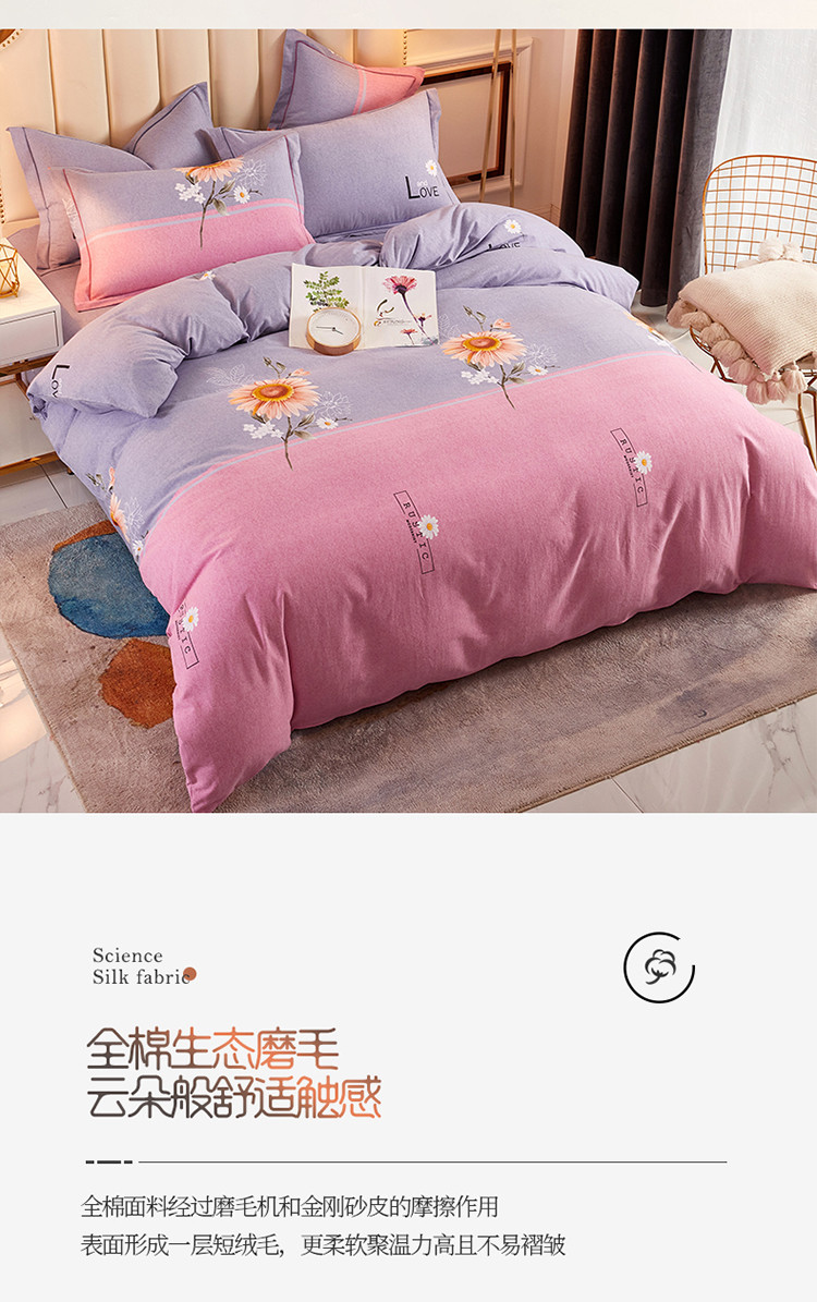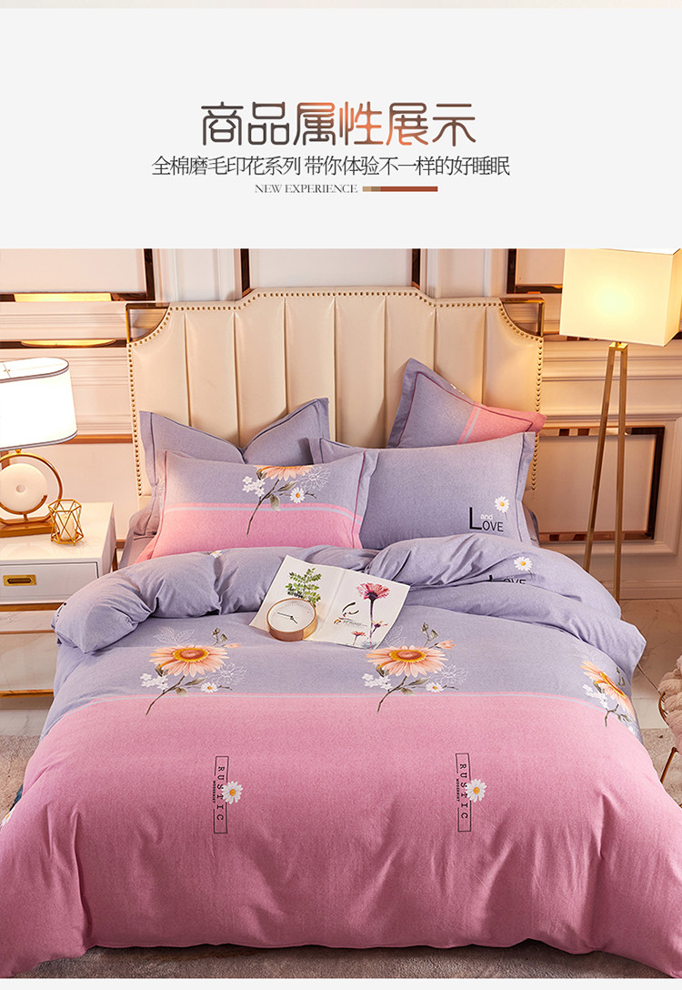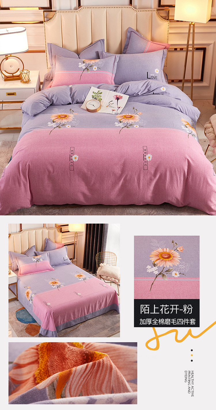 商品名称:雲归梦 2020新款全棉加厚磨毛四件套 陌上花开-粉