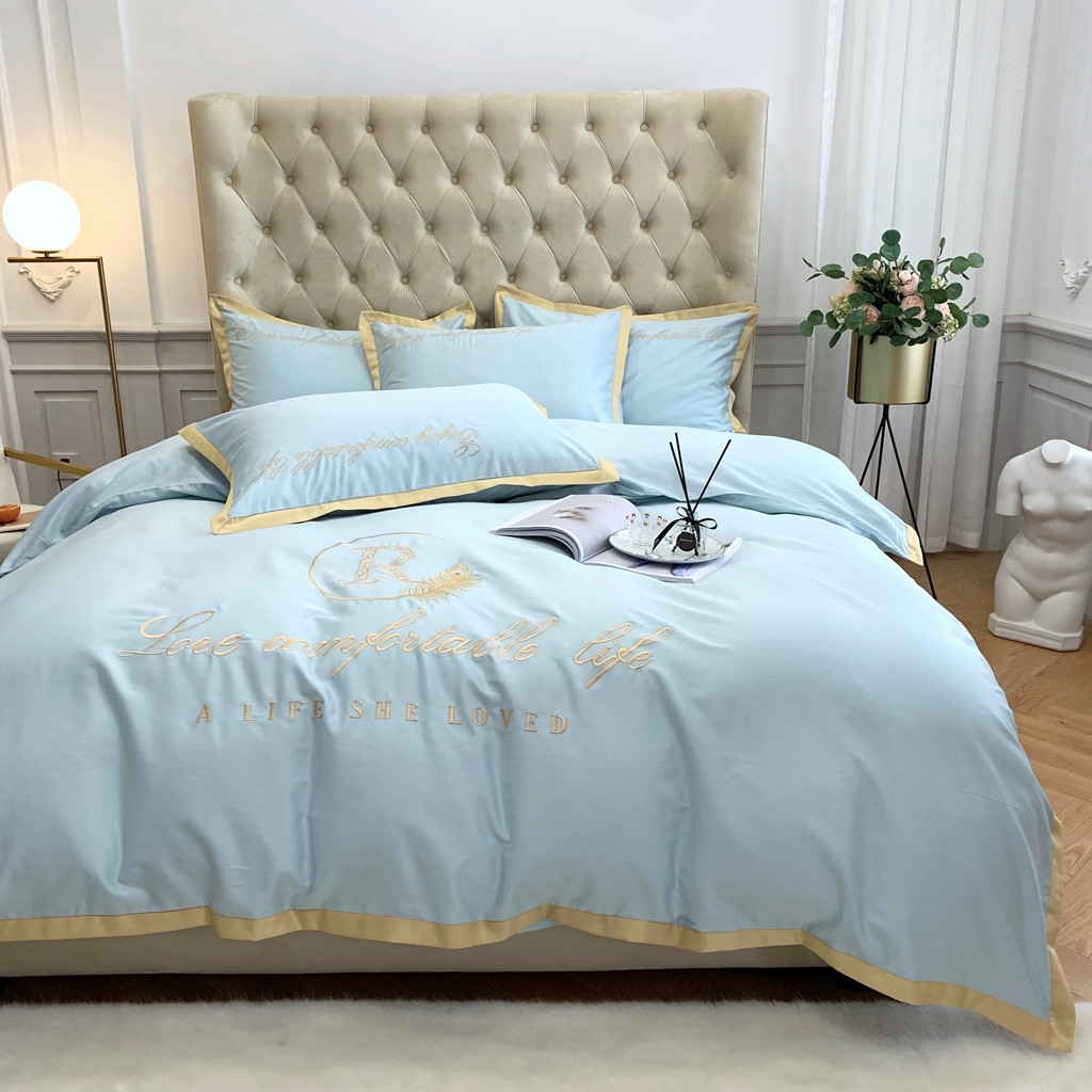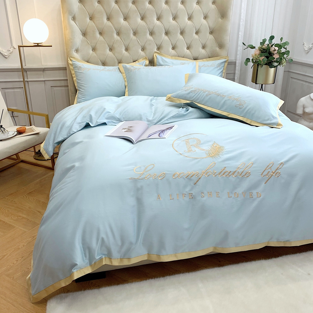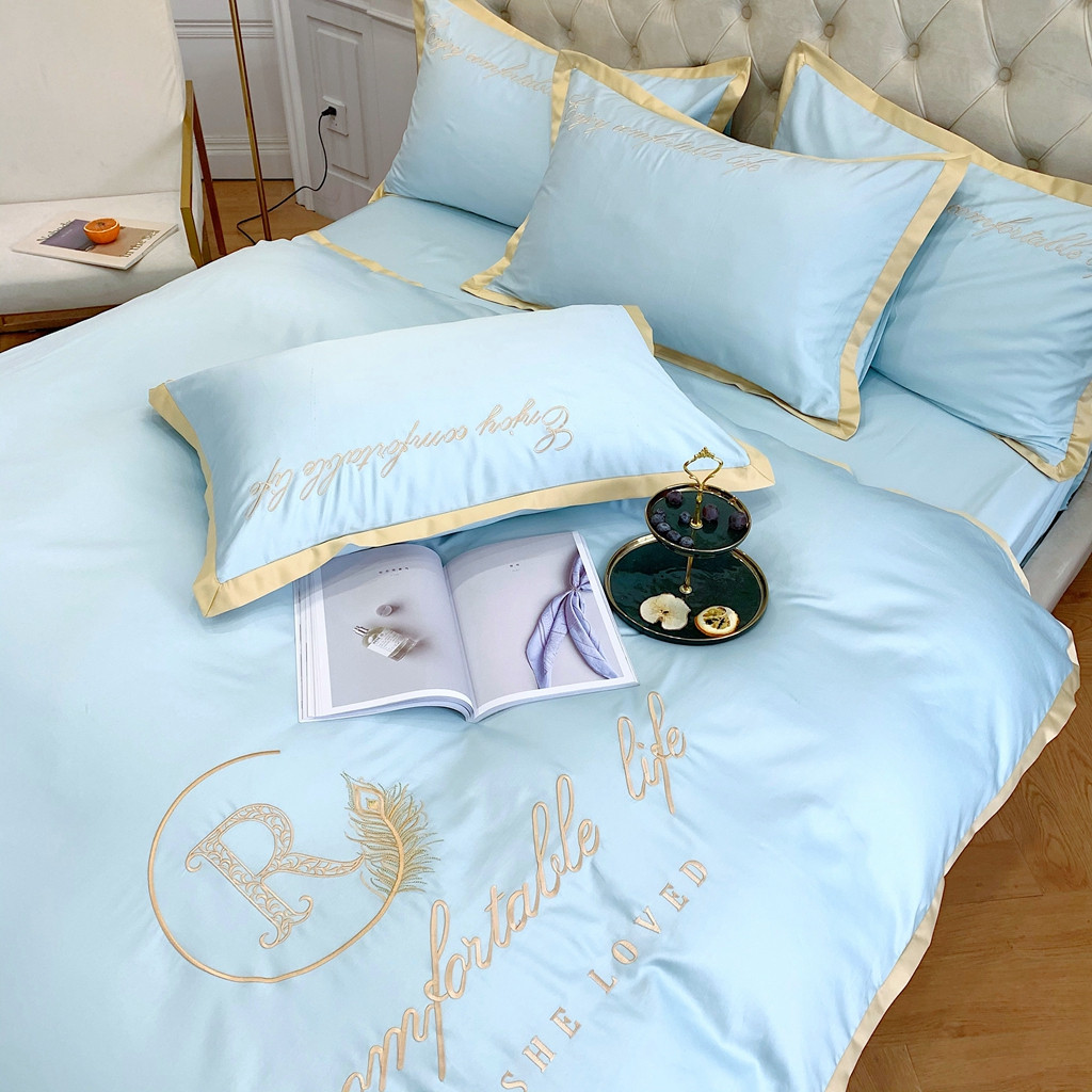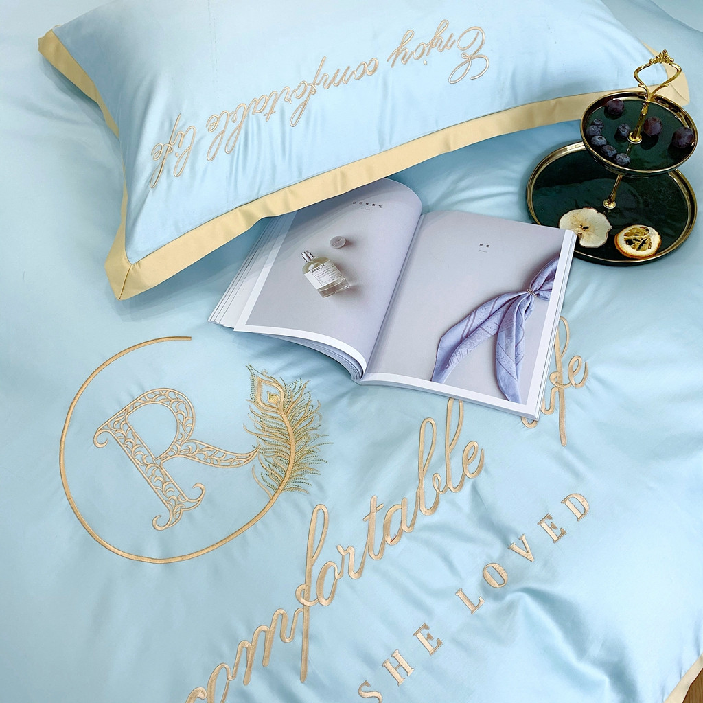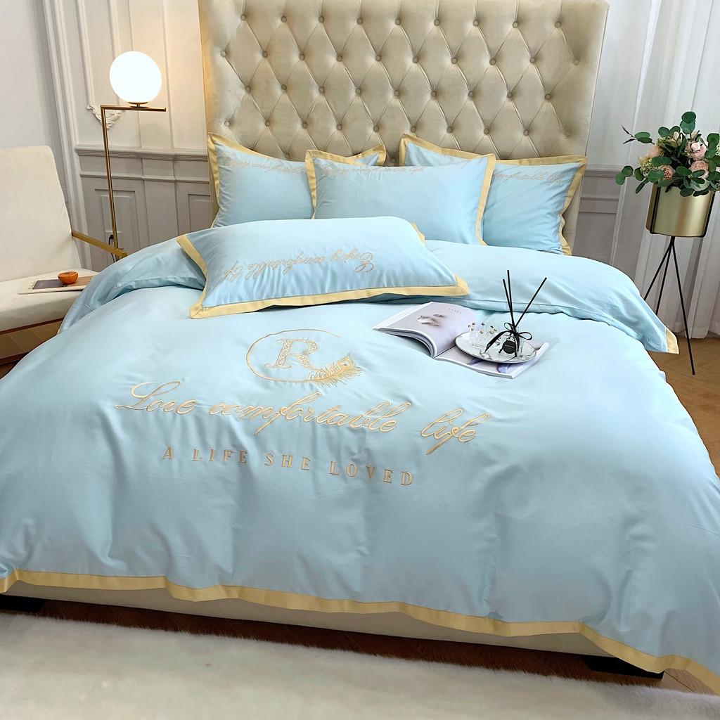 馨蕊家居2021秋冬新品60s长绒棉简爱四件套简爱-蒂芙尼蓝