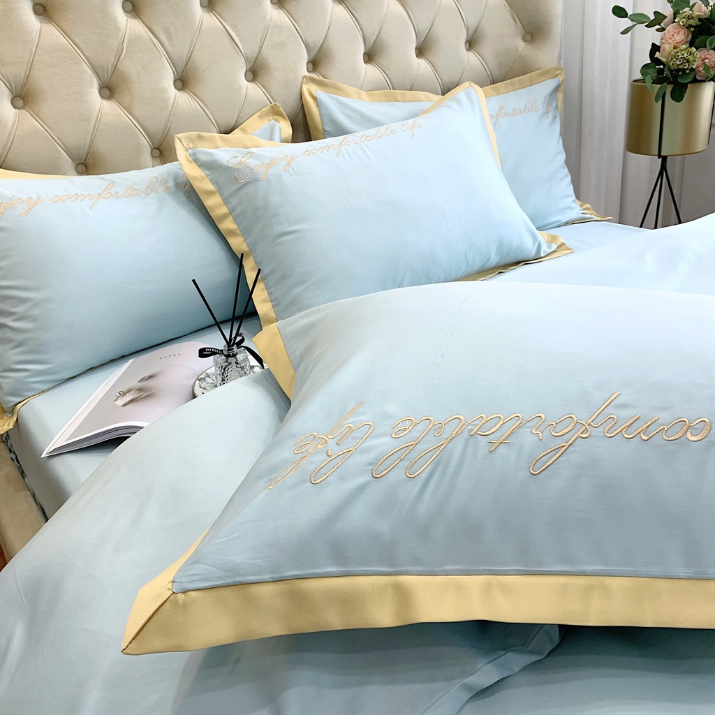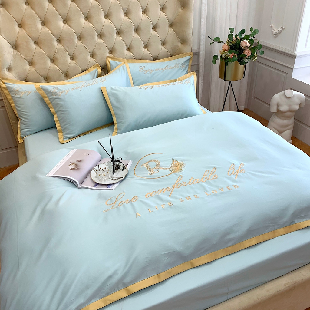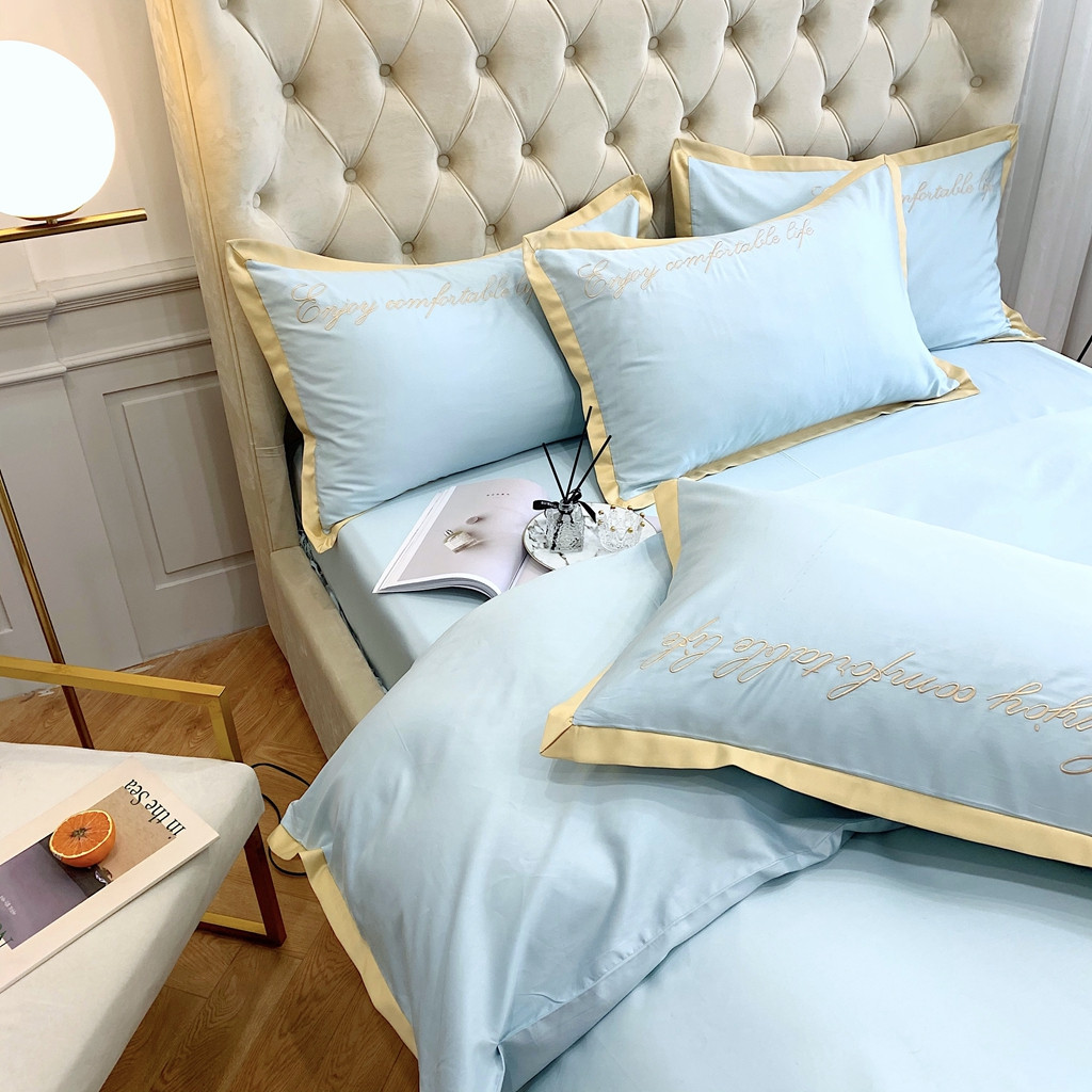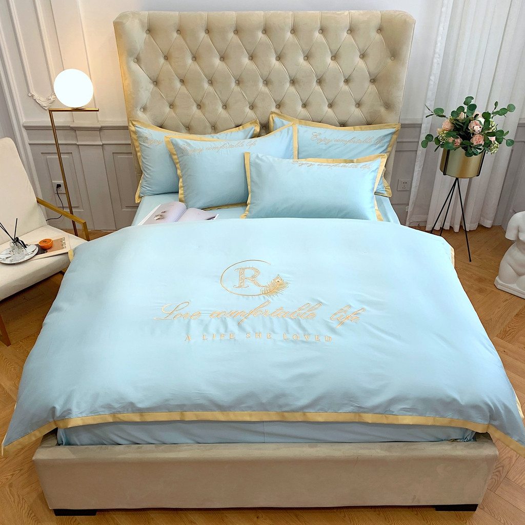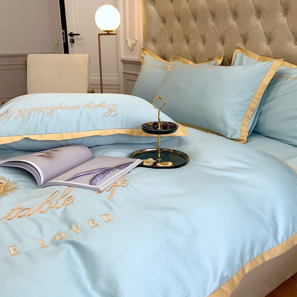 馨蕊家居2021秋冬新品60s长绒棉简爱四件套简爱-蒂芙尼蓝