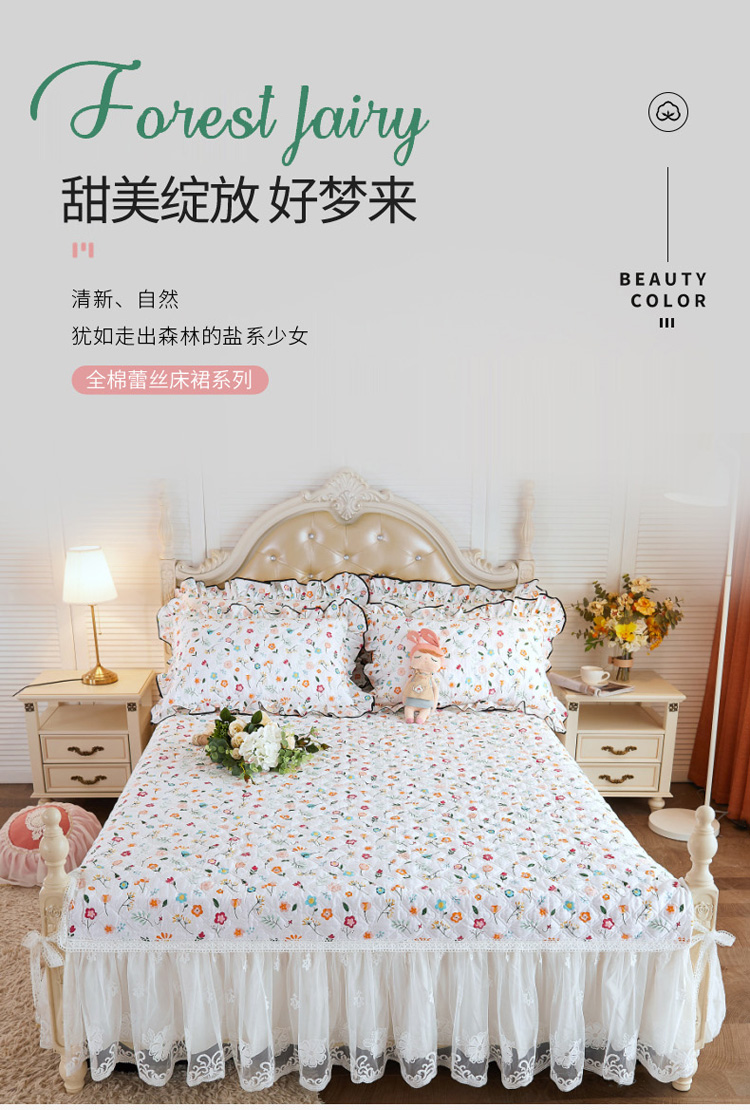 • 91家纺网 家纺一手货源 找家纺 菊上家纺 2021新款全棉法式浪漫复古蕾丝公主风床裙 初恋
