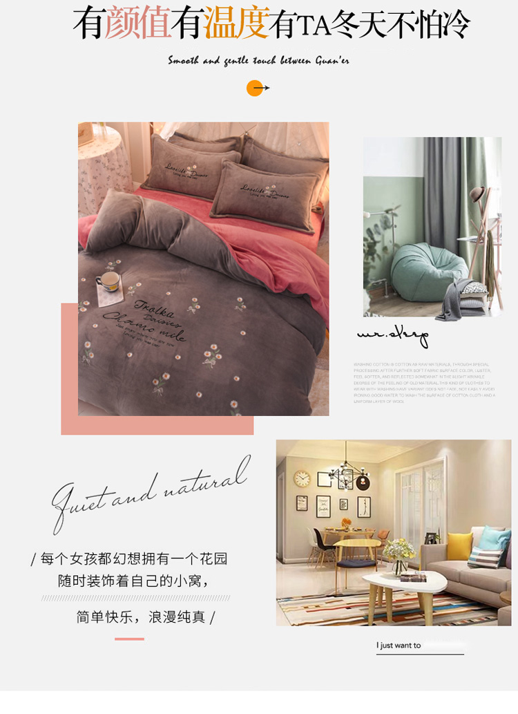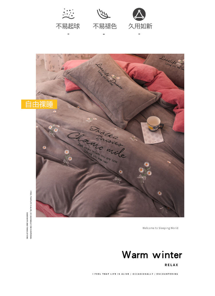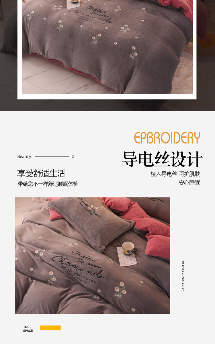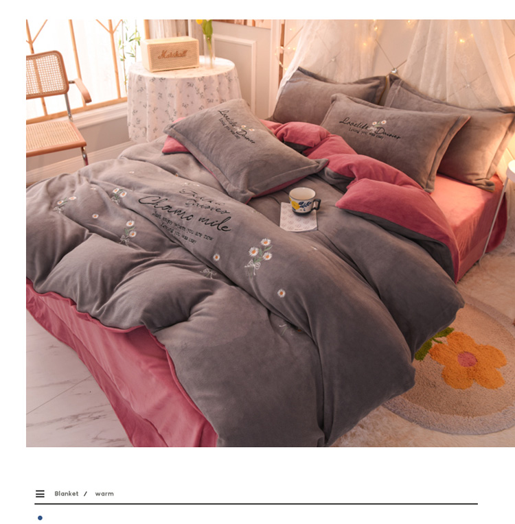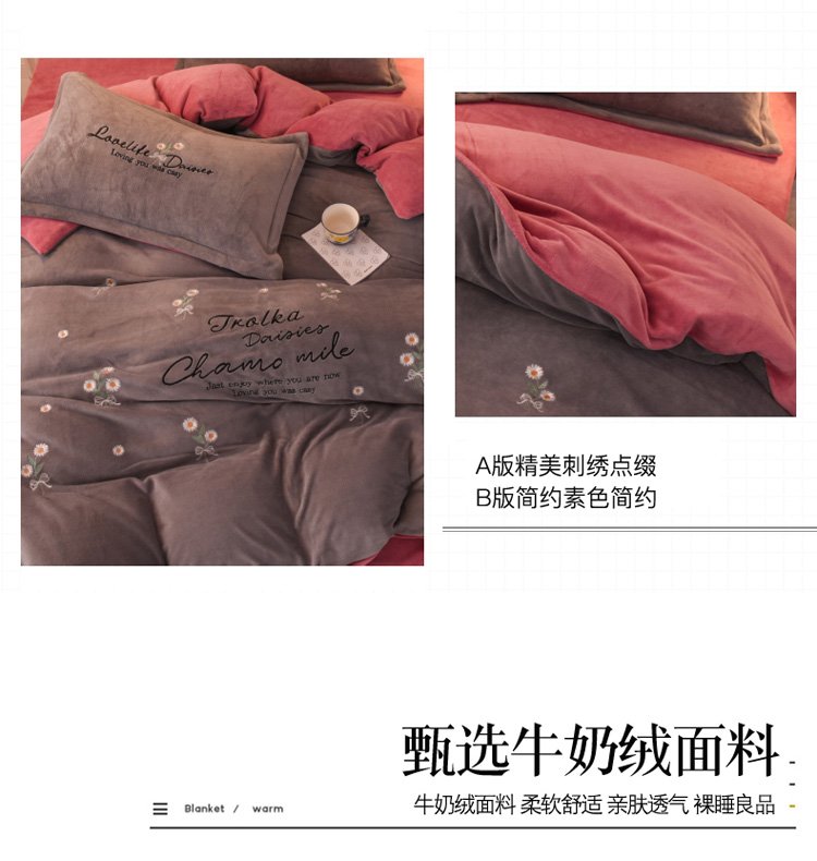 商品名称:捌月牛奶绒小清新刺绣四件套 雏菊之恋-深灰