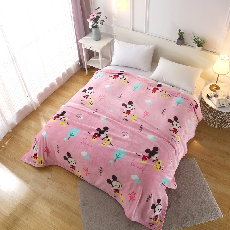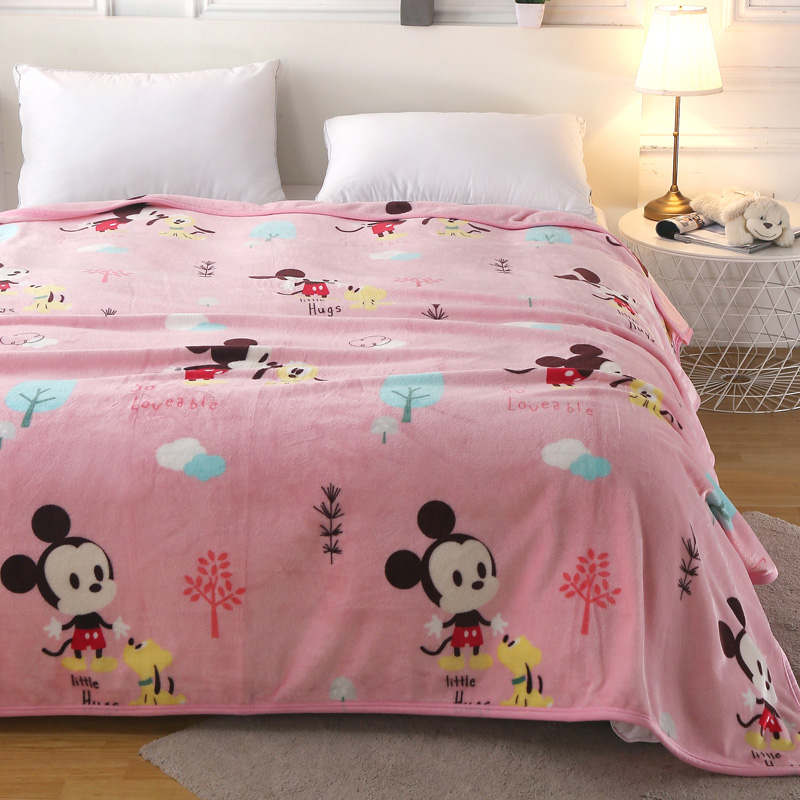 佰亿莱 2024新款法莱绒牛奶绒迪士尼毛毯 可爱米奇粉