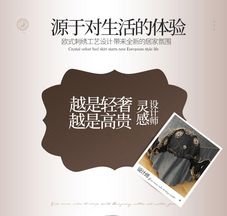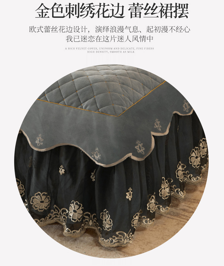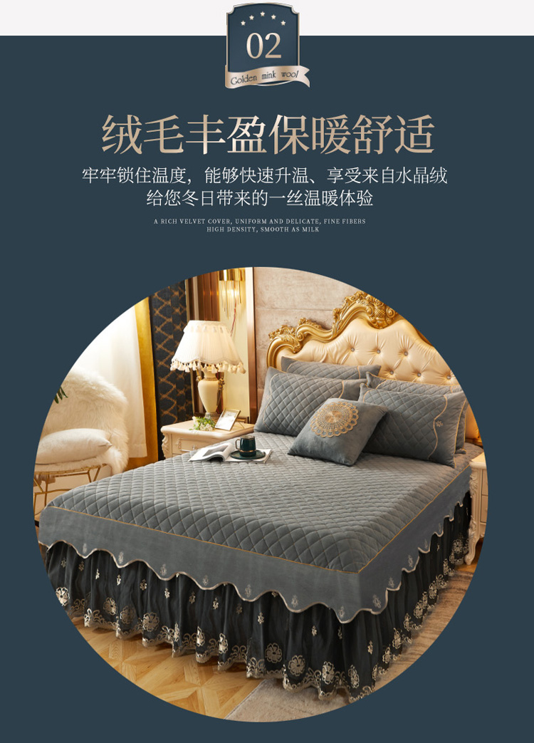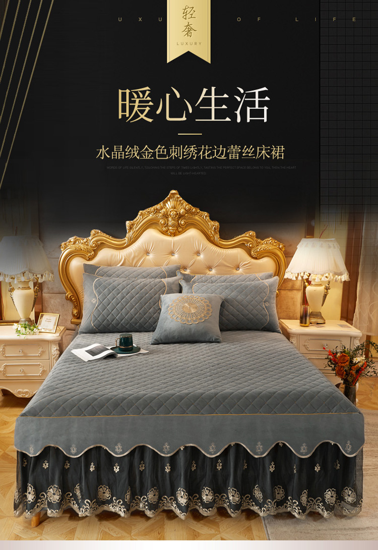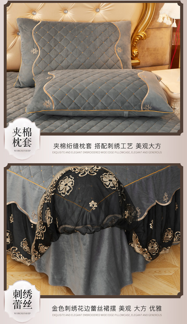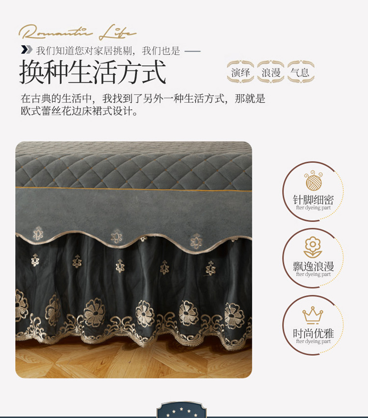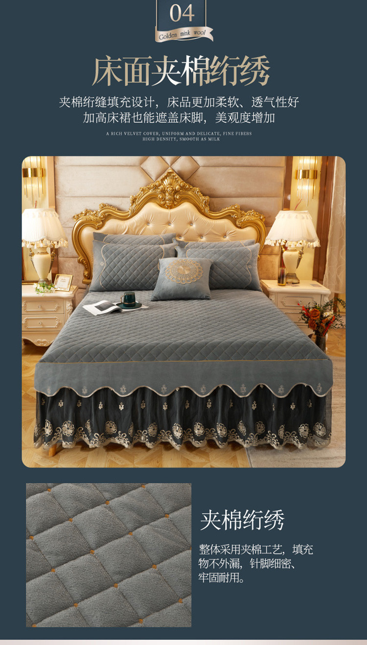 • 91家纺网 家纺一手货源 找家纺 菊上2021新款加厚水晶绒刺绣单床裙金色年华系列 摩灰