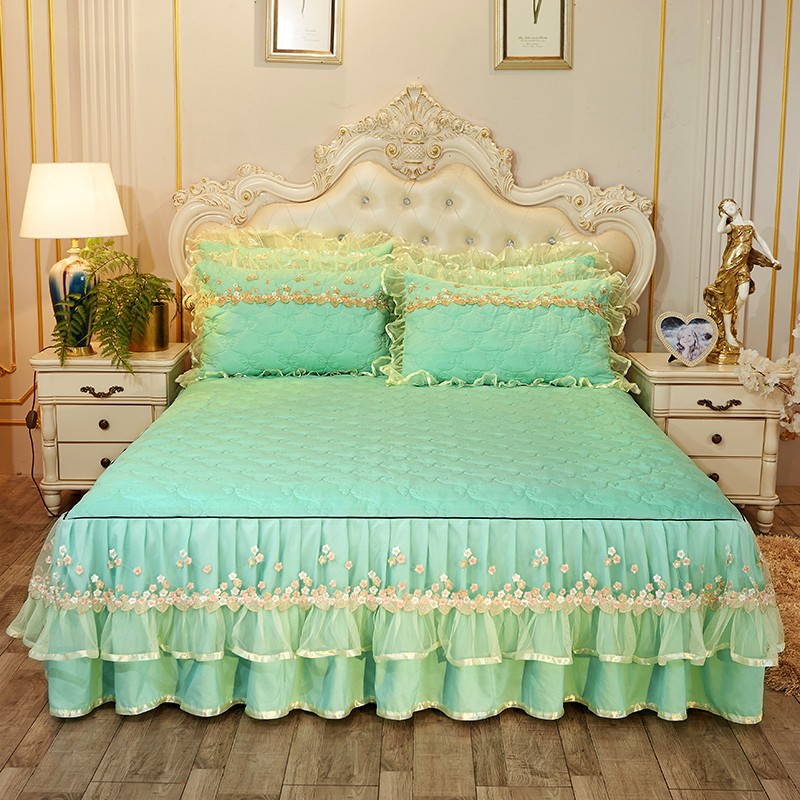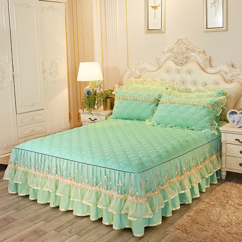 瑞宝 2025新款夹棉加厚磨毛床裙梦恋系列床裙三件套 嫩绿