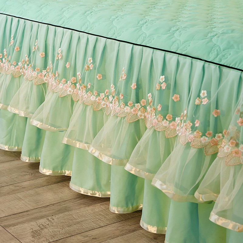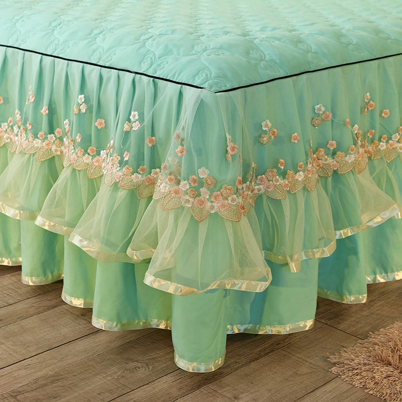 商品名称:瑞宝 2025新款夹棉加厚磨毛床裙梦恋系列床裙三件套 嫩绿