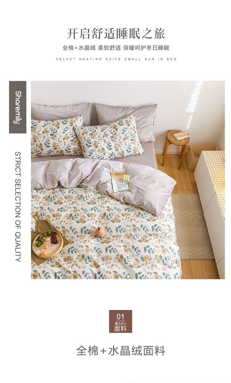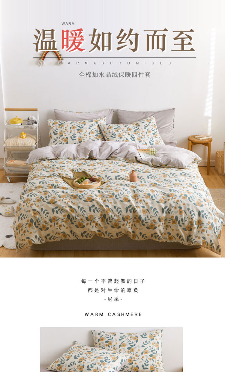 当前位置: 91家纺网 > 商品网购 > 床品套件 > 四件套 > 磨绒四件套 > 梦家居 2020新款秋冬A棉B绒四件套 丝语绒