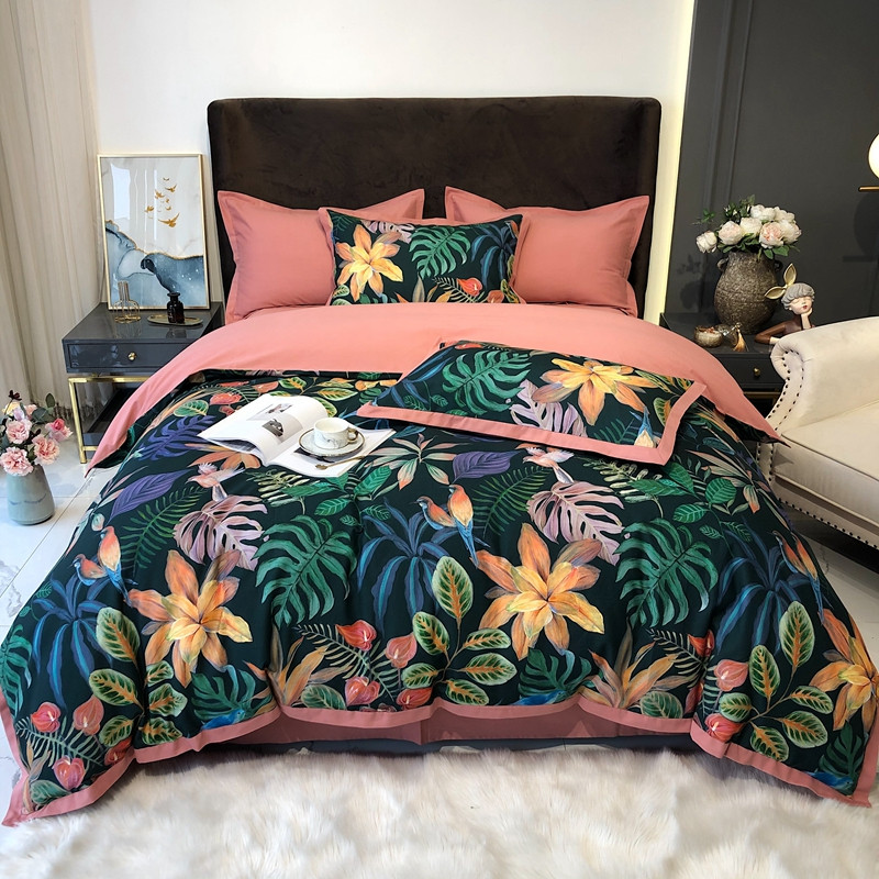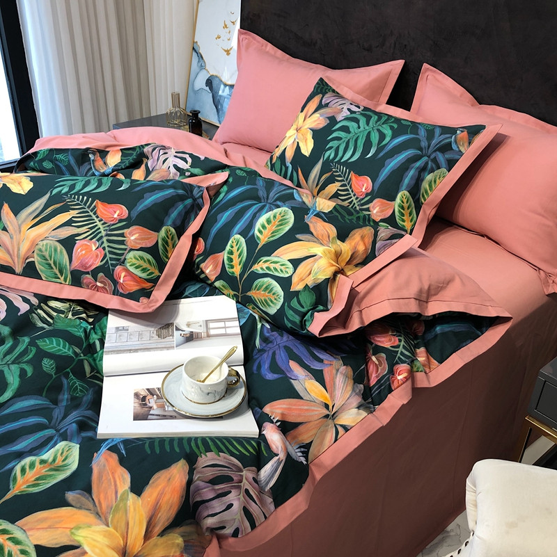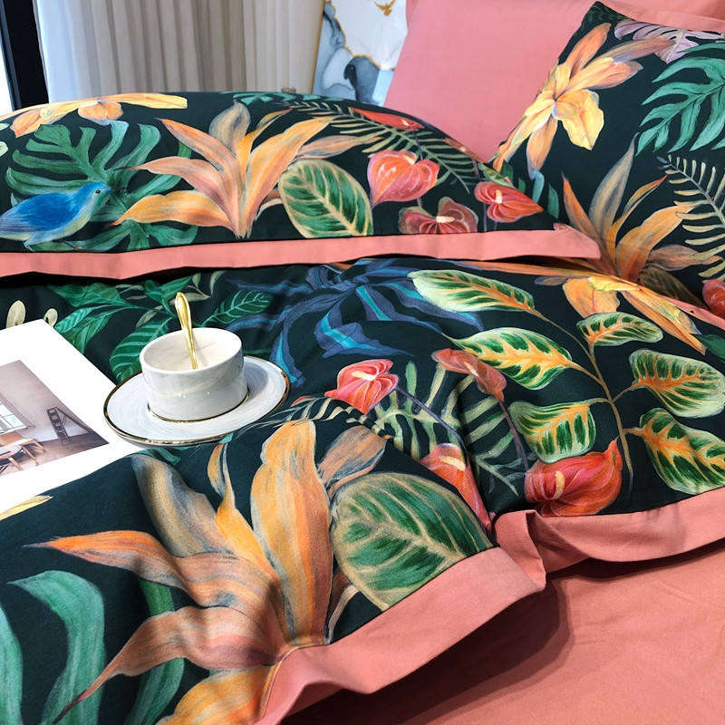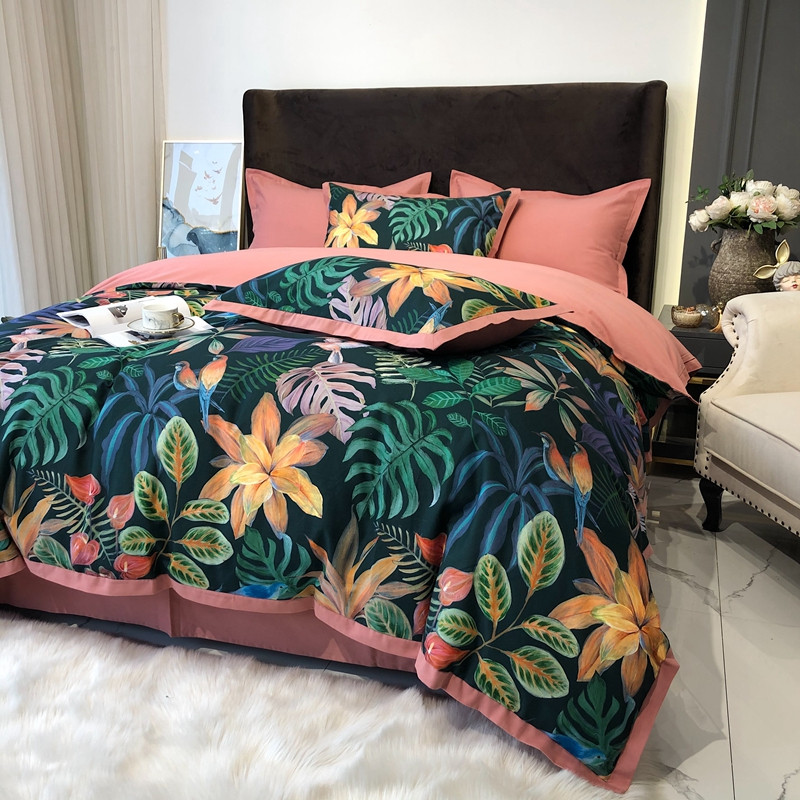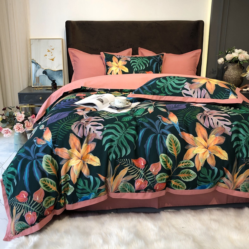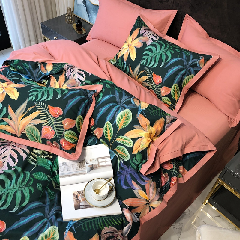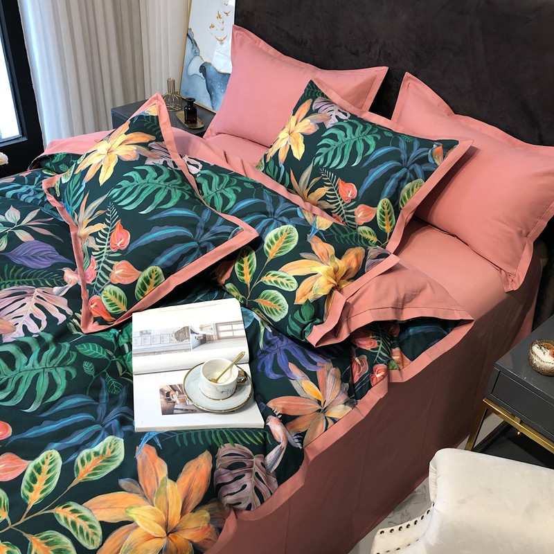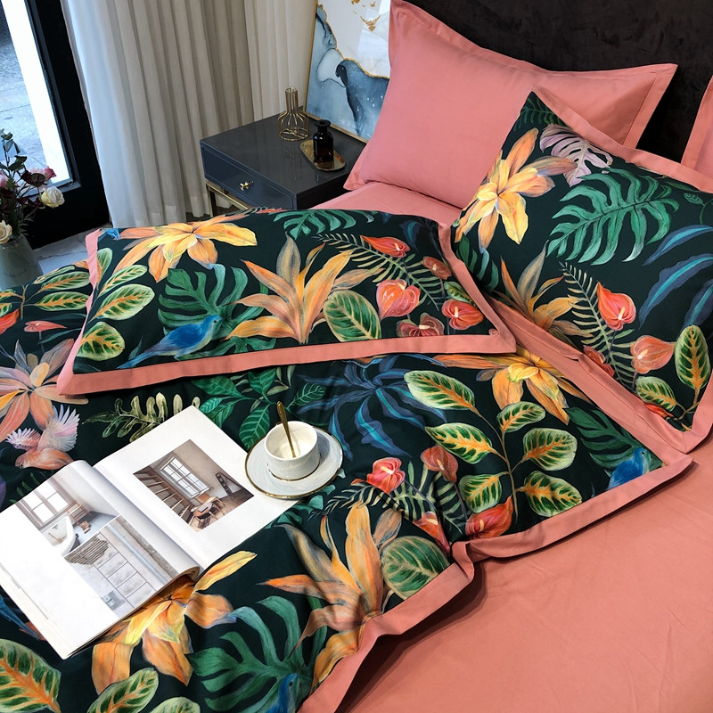 太古汇 2020新款60支数码印花小边款四件套 温妮莎绿