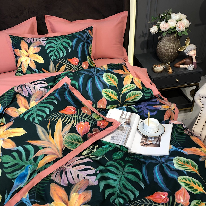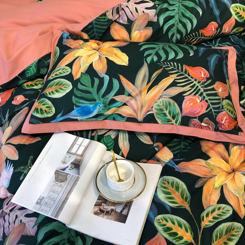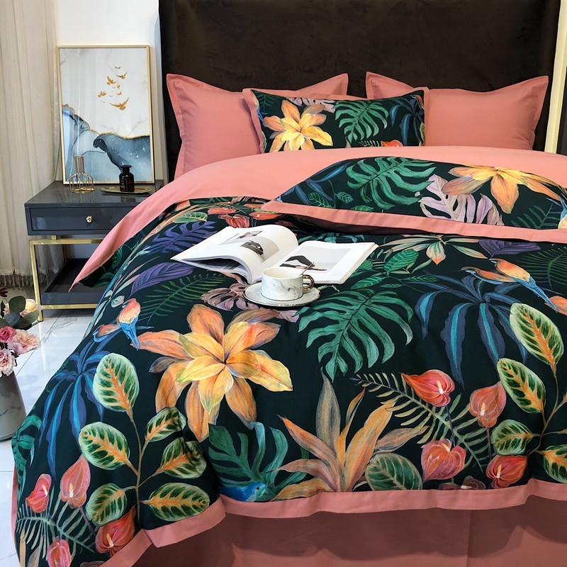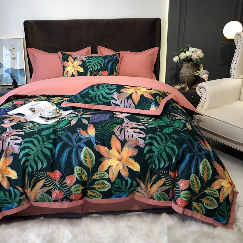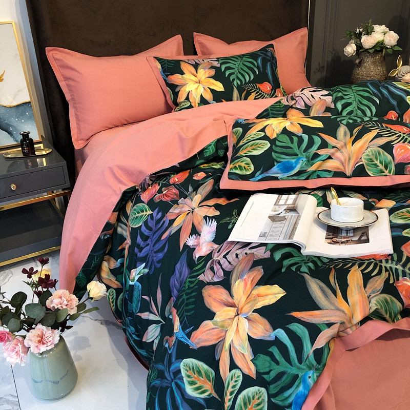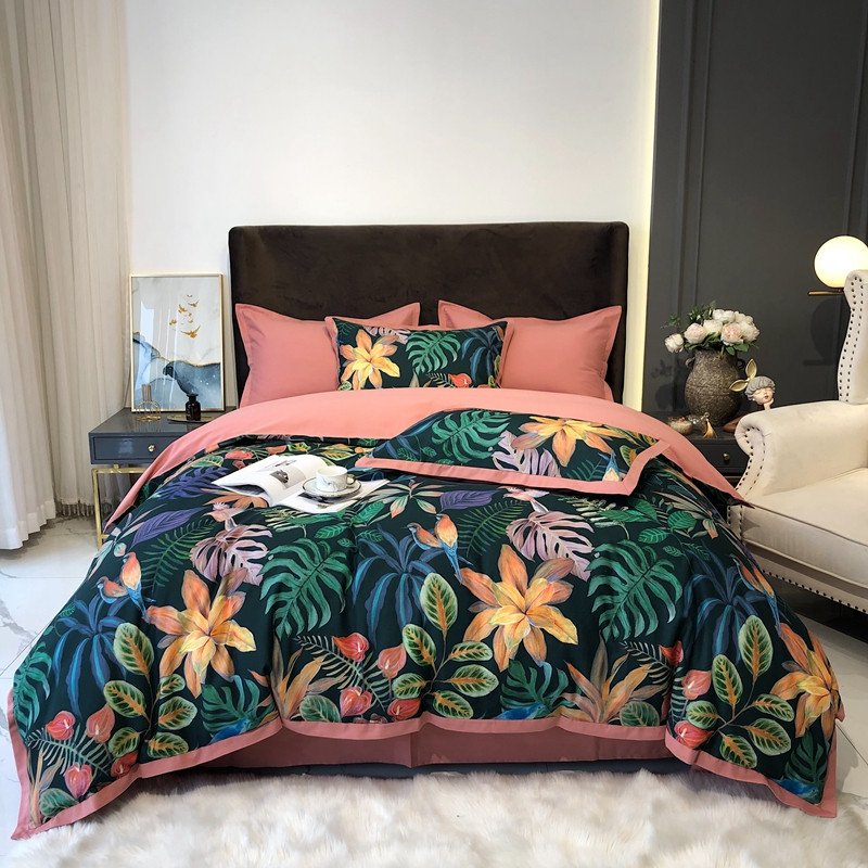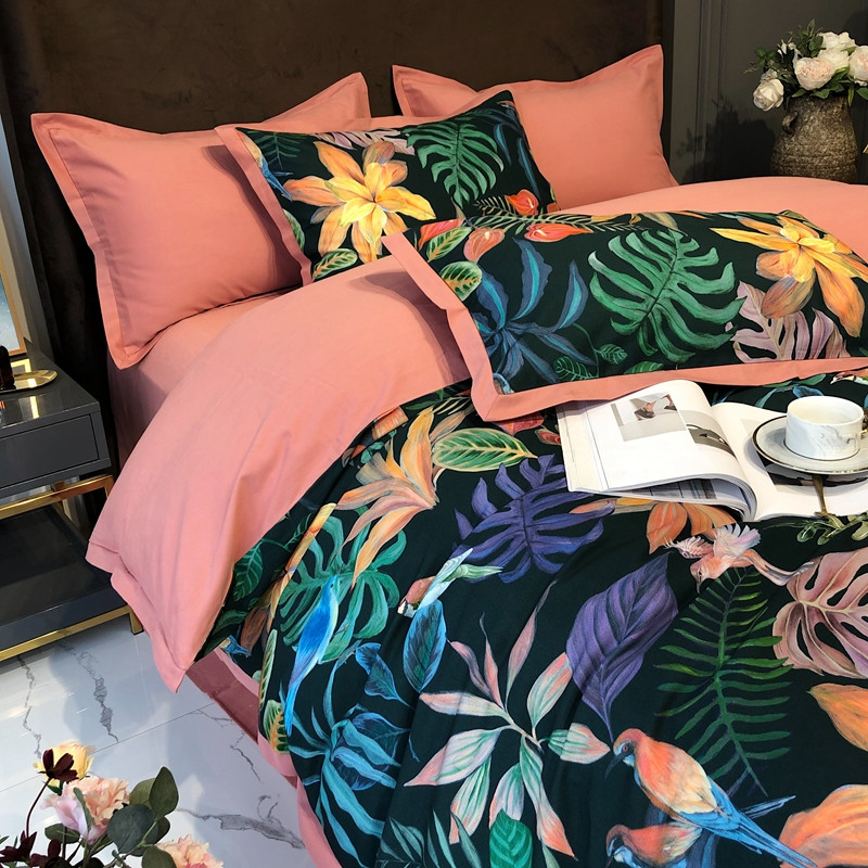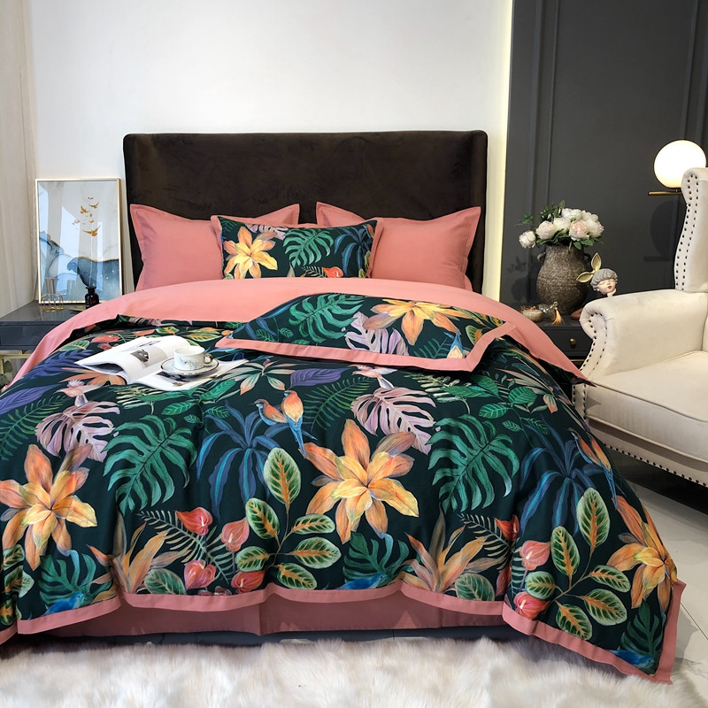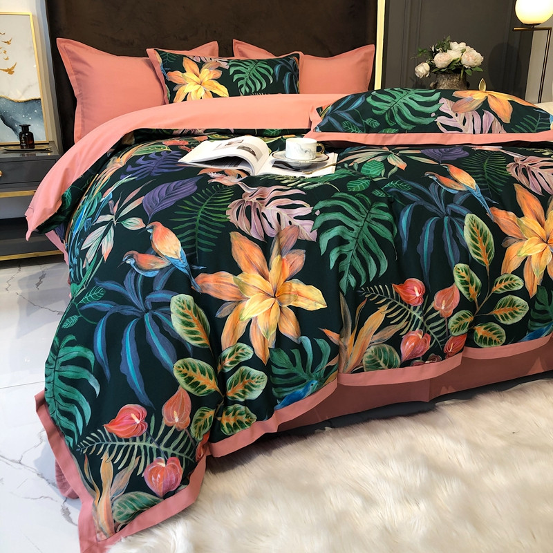 太古汇 2020新款60支数码印花小边款四件套 温妮莎绿